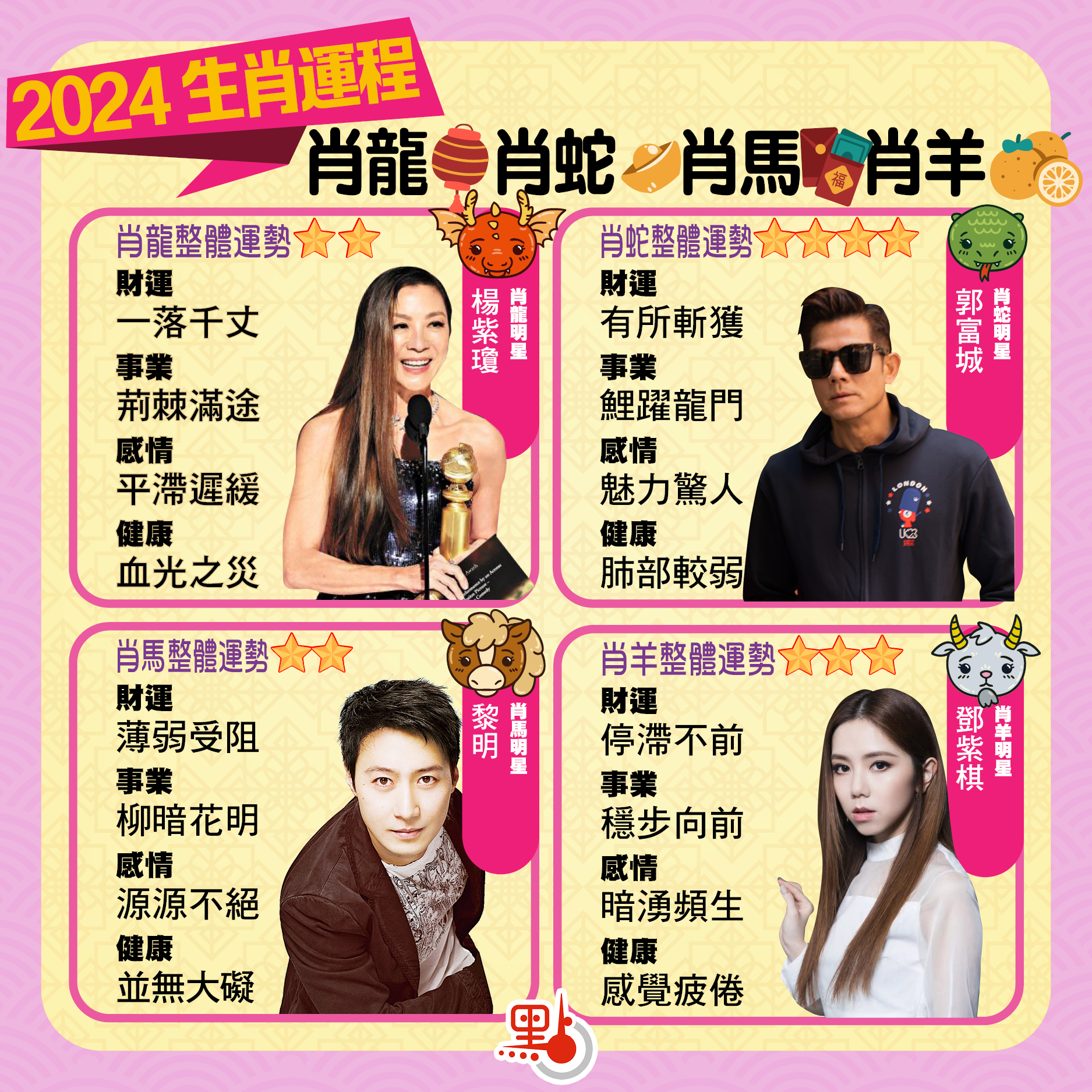 今日先嚟睇吓屬「龍」、「蛇」、「馬」及「羊」的朋友啦~