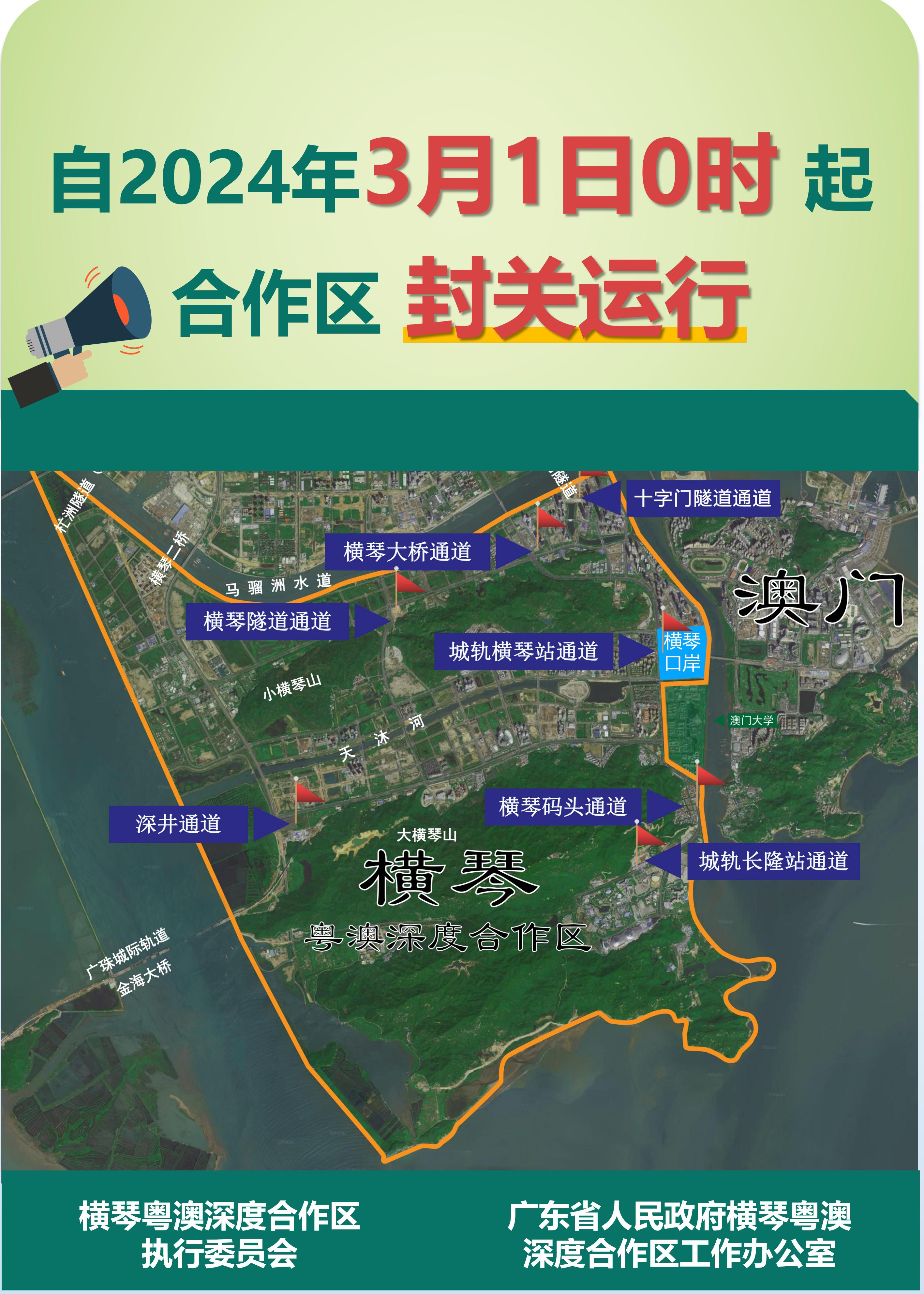 (大公文匯網記者 方俊明)橫琴粵澳深度合作區執行委員會、廣東省政府橫琴粵澳深度合作區工作辦公室8日發布通告,橫琴粵澳深度合作區(下稱「合作區」)自今年3月1日0時起正式封關運行。這是實現合作區第一階段發展目標的標誌性舉措,也是推動琴澳一體化發展的重要一步。按此前公布的政策,封關運行後,個人行李和寄遞物品經「一線」進入合作區,以自用、合理數量為限且符合有關規定予以免稅;從橫琴經「二線」進入內地可以帶8000元(人民幣,下同)免稅物品。