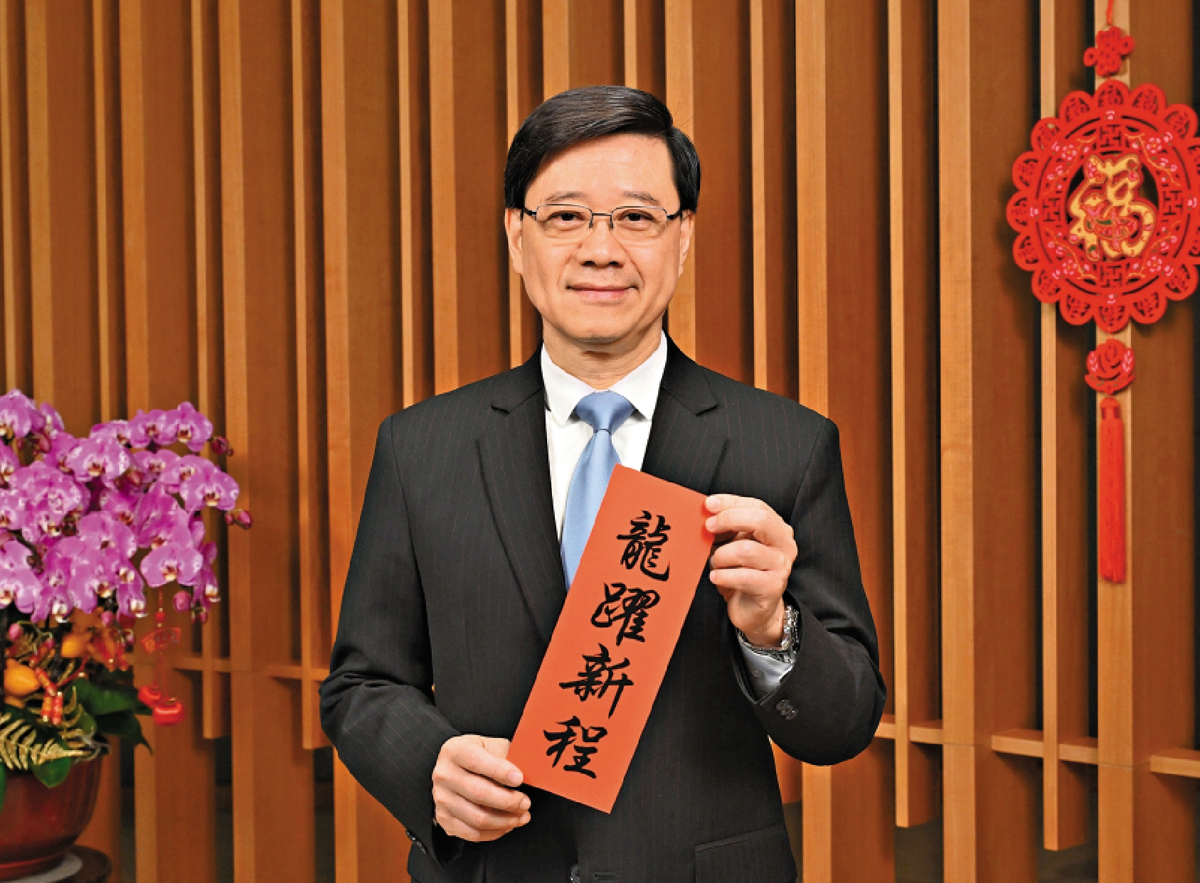 我想,香港活力充沛、多元包容的特質,與龍相似。我也堅信,今年將是香港在全面復常後,龍騰飛躍的一年。特區政府會全力推動經濟發展,積極融入國家發展大局,提升香港的國際競爭力,為香港帶來新商機。政府也會持續不斷改善市民生活,把關愛共融落到實處。政府會盡快完成基本法第23條立法,讓香港再無後顧之憂,昂首向前邁進,聚焦發展經濟,改善民生。