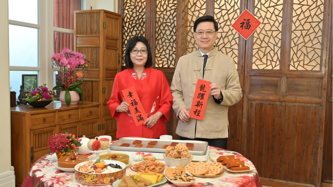 大公文匯全媒體報道:行政長官李家超今日(9日)發表農曆新年賀辭。他和太太祝願香港市民,龍年家肥屋潤,心想事成,龍精虎猛,龍年行大運。