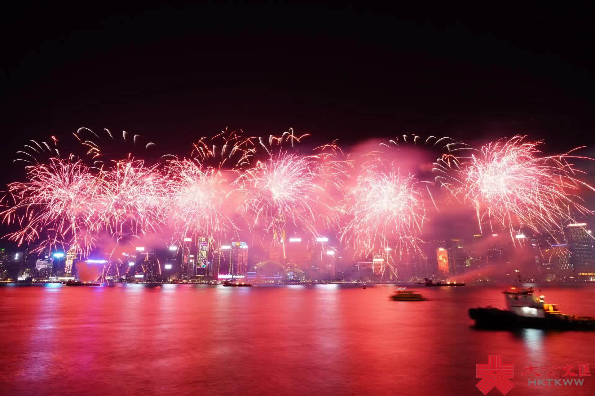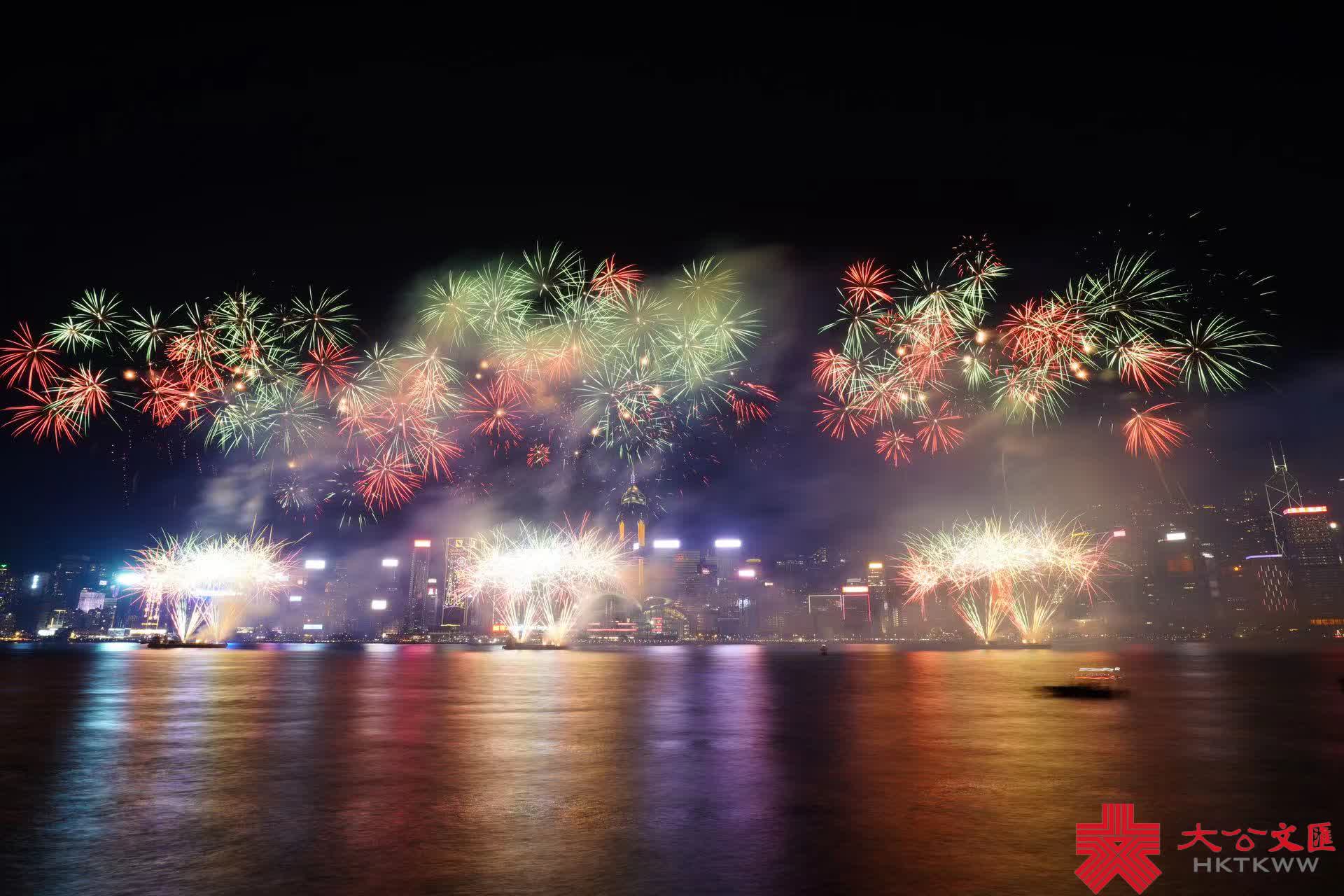 大公文匯網報道,農曆新年煙花匯演今晚(11日)8時在維港上空上演,歷時23分鐘,以「龍年百業旺、盛世中華強」為主題,劃分為八幕。匯演動用三艘專業躉船,綻放共23888顆煙花,整體預算達1300萬港幣。