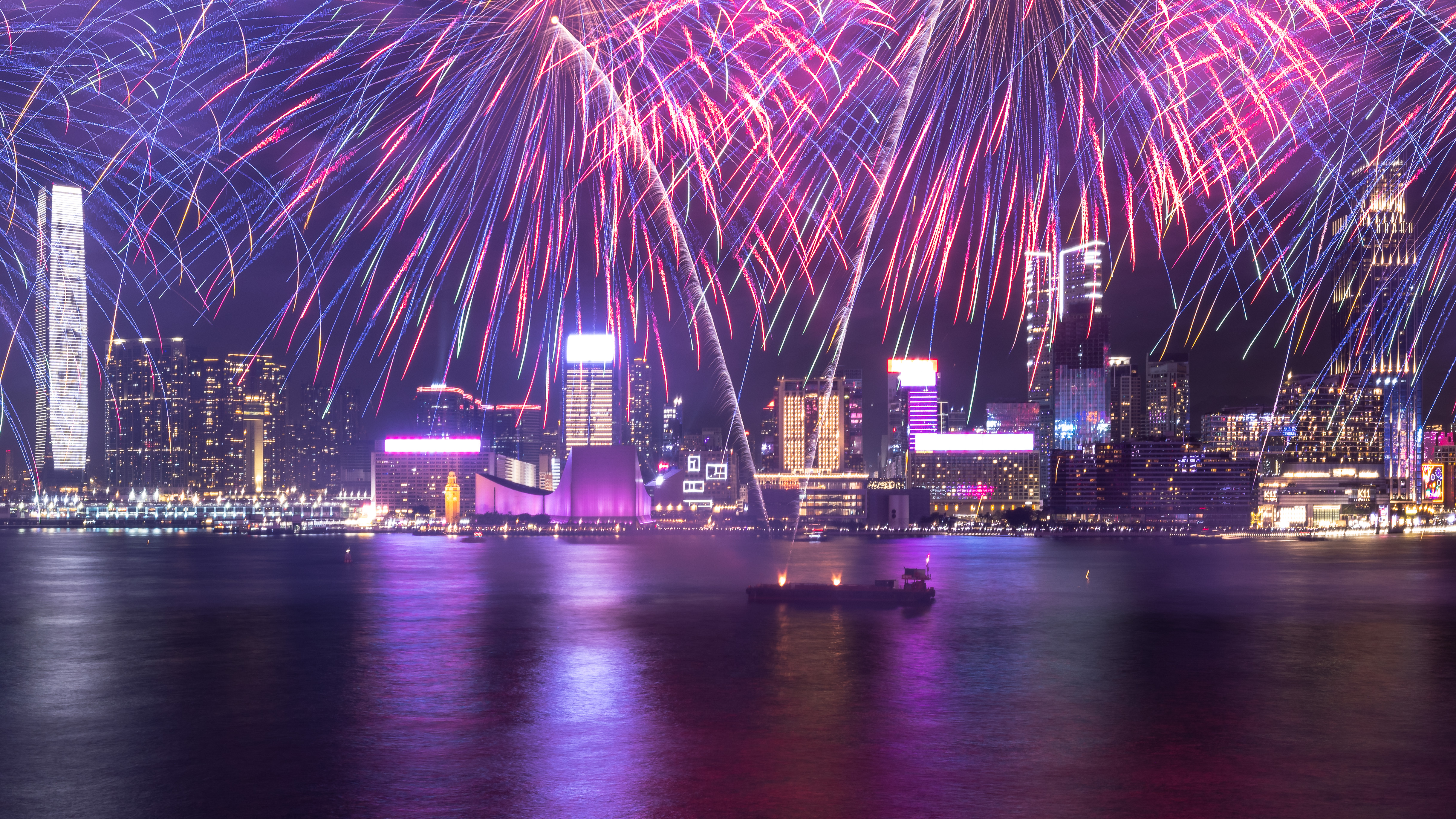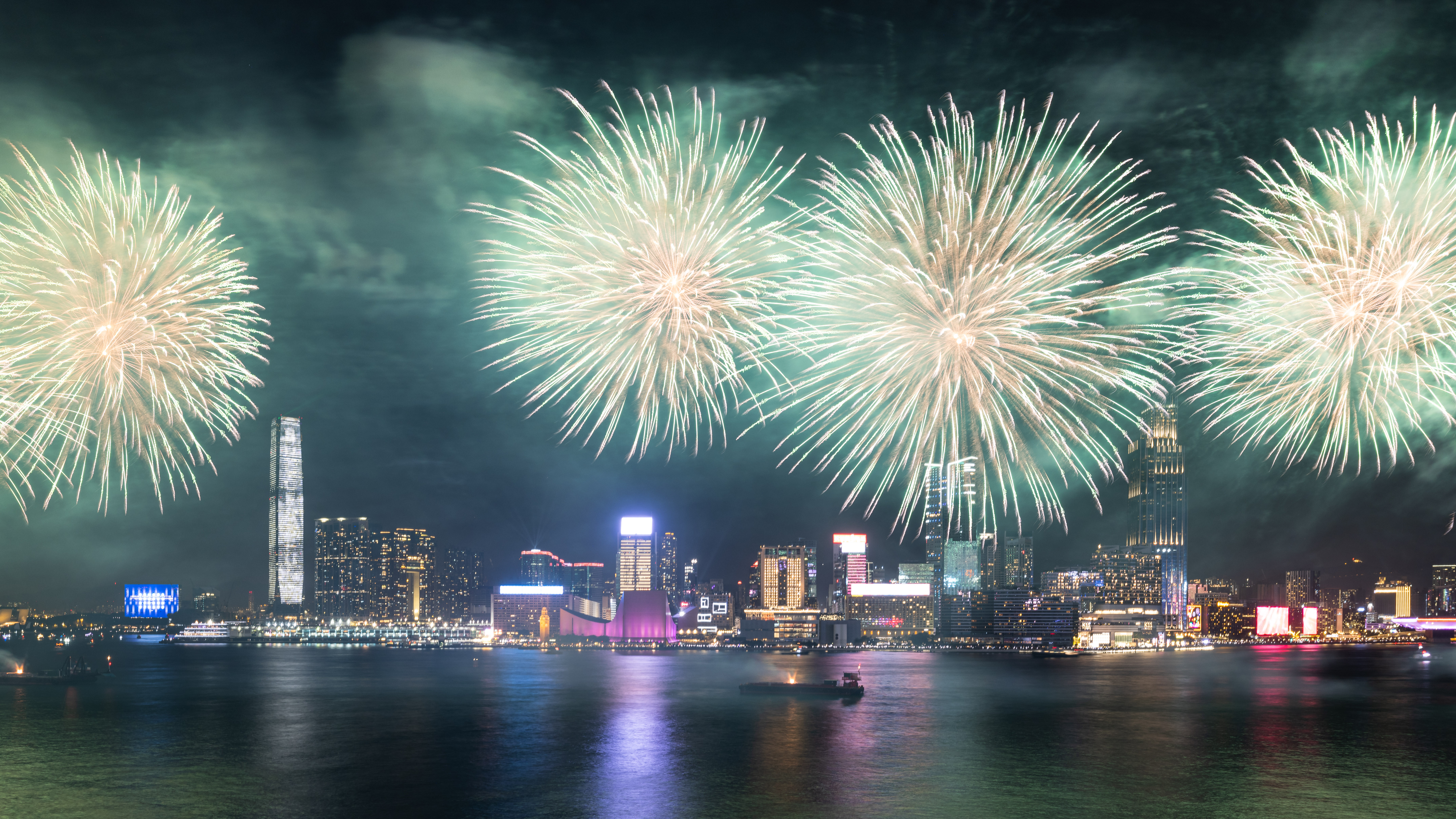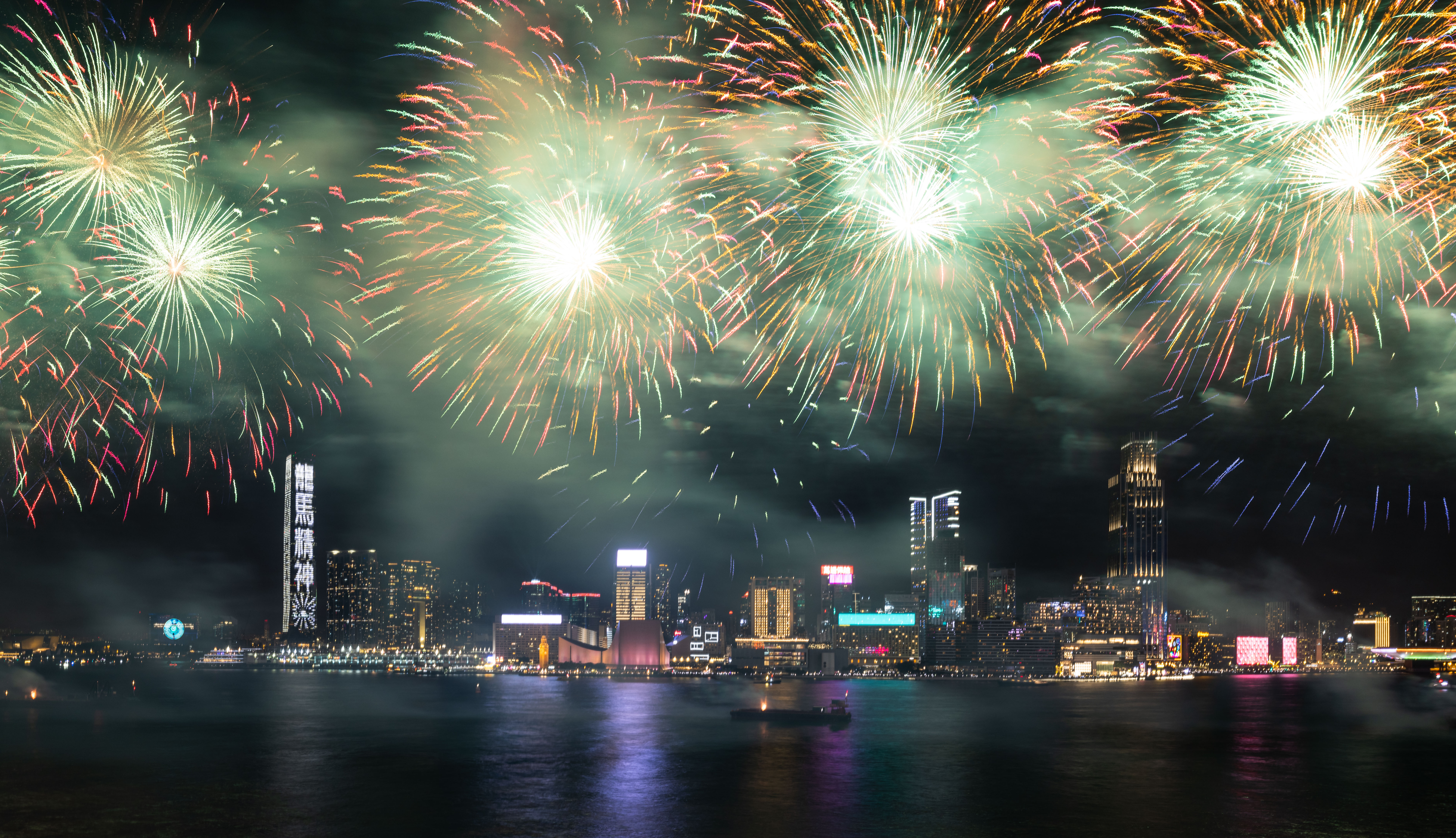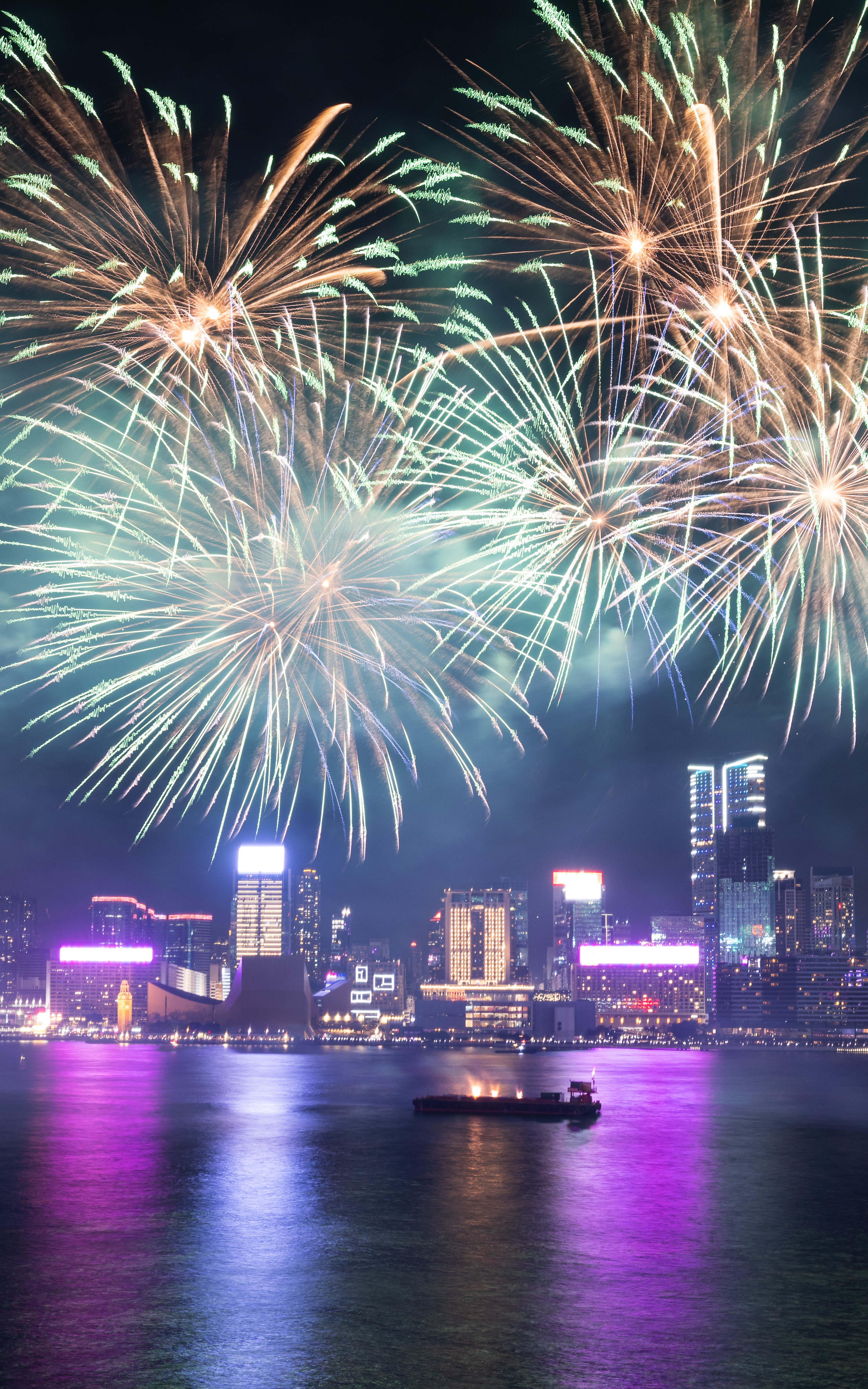 大公文匯全媒體報道,農曆新年煙花匯演今晚(11日)8時在維港上空上演,歷時23分鐘,以「龍年百業旺、盛世中華強」為主題,共分為八幕。匯演動用三艘專業躉船,綻放共23888顆煙花,整體預算達1300萬港幣。煙花匯演的高清大圖來了,快來欣賞!