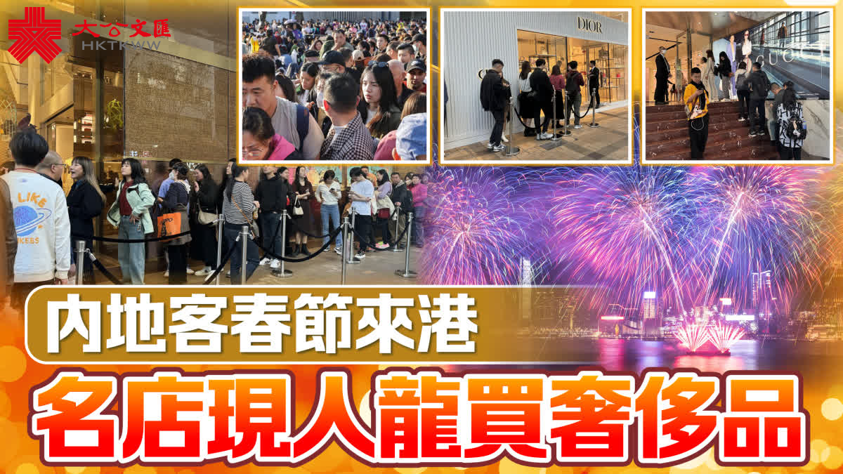 大公文匯全媒體報道,不少內地旅客趁春節假期來港遊玩,尖沙咀廣東道一帶有不少手拖行李喼的旅客。有內地旅客特意來港遊玩並購物,不少名店如DIOR、LV、GUCCI等出現排隊等入內購物人龍,有內地旅客一行六人,豪花20萬元購買奢侈品。