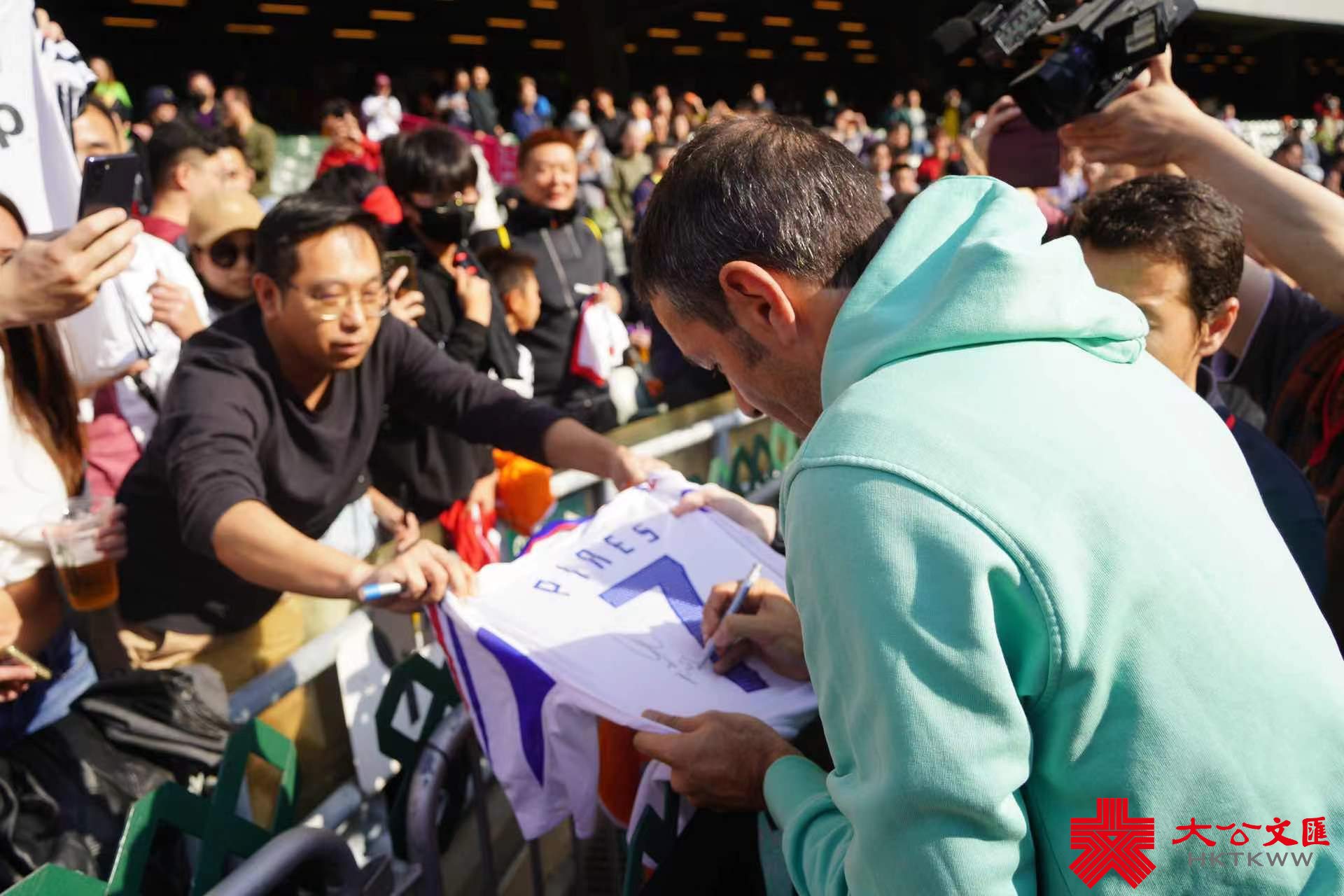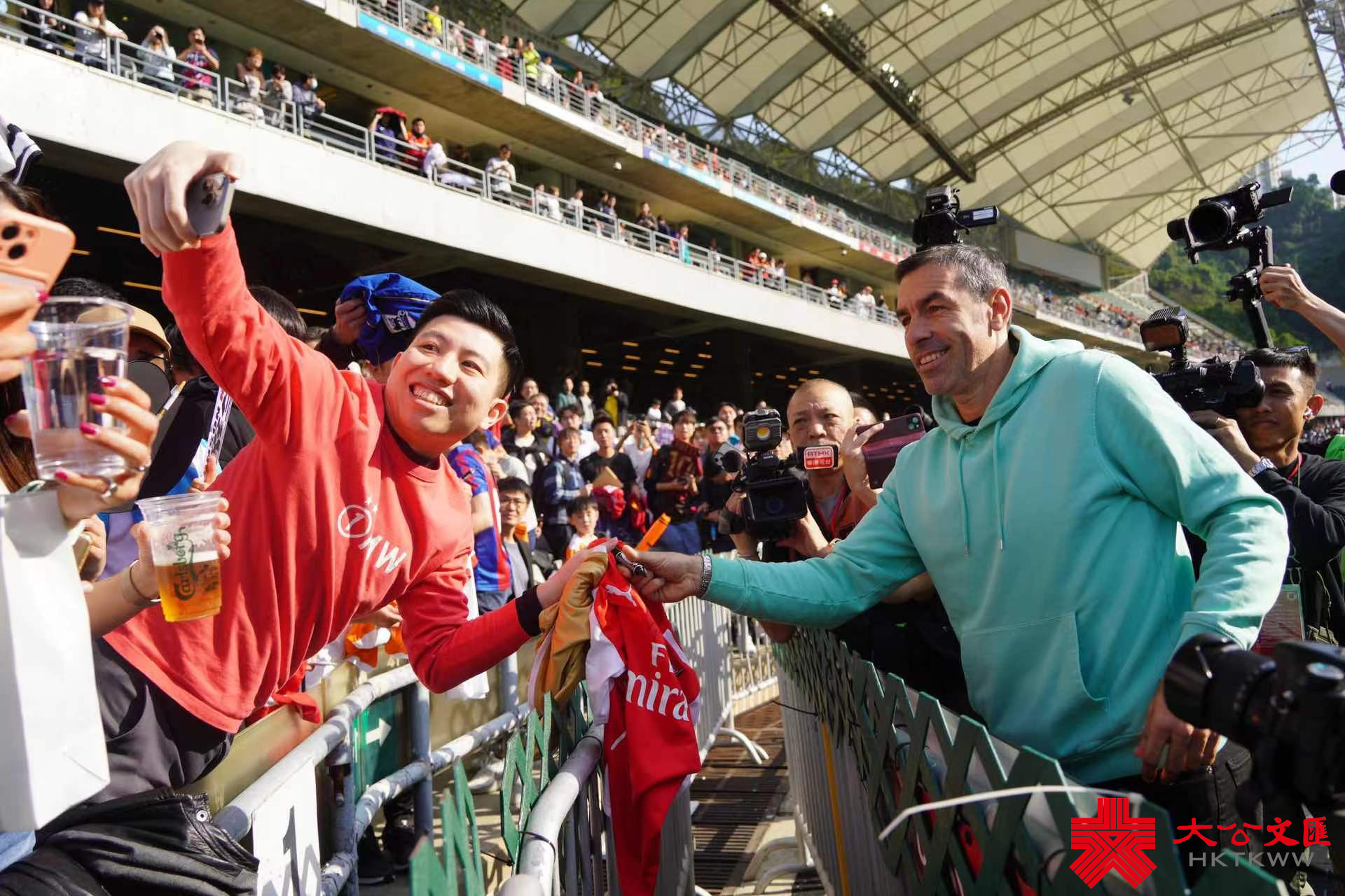 大公文匯全媒體報道,停辦4年的賀歲盃今日(13日)下午回歸香港大球場,由17位世界級球星組成的世界明星隊,對陣由「左倫右李」歐偉倫、李健和領銜的香港明星隊。球賽於下午5時開波,下午3時開閘讓球迷入場。未幾,世界明星隊各位巨星現身大球場,賽前身穿休閒服同球迷互動,對球迷簽名合影要求「有求必應」。皮利斯繼1月中奧雲對史高斯傳奇球星比賽後再度亮相香港,人氣爆棚,簽名簽不停。
