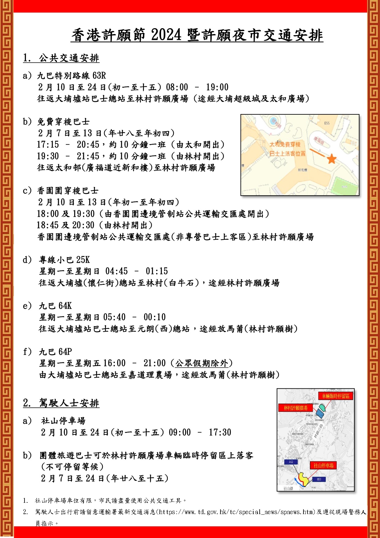 林村許願夜市交通安排一覽:
