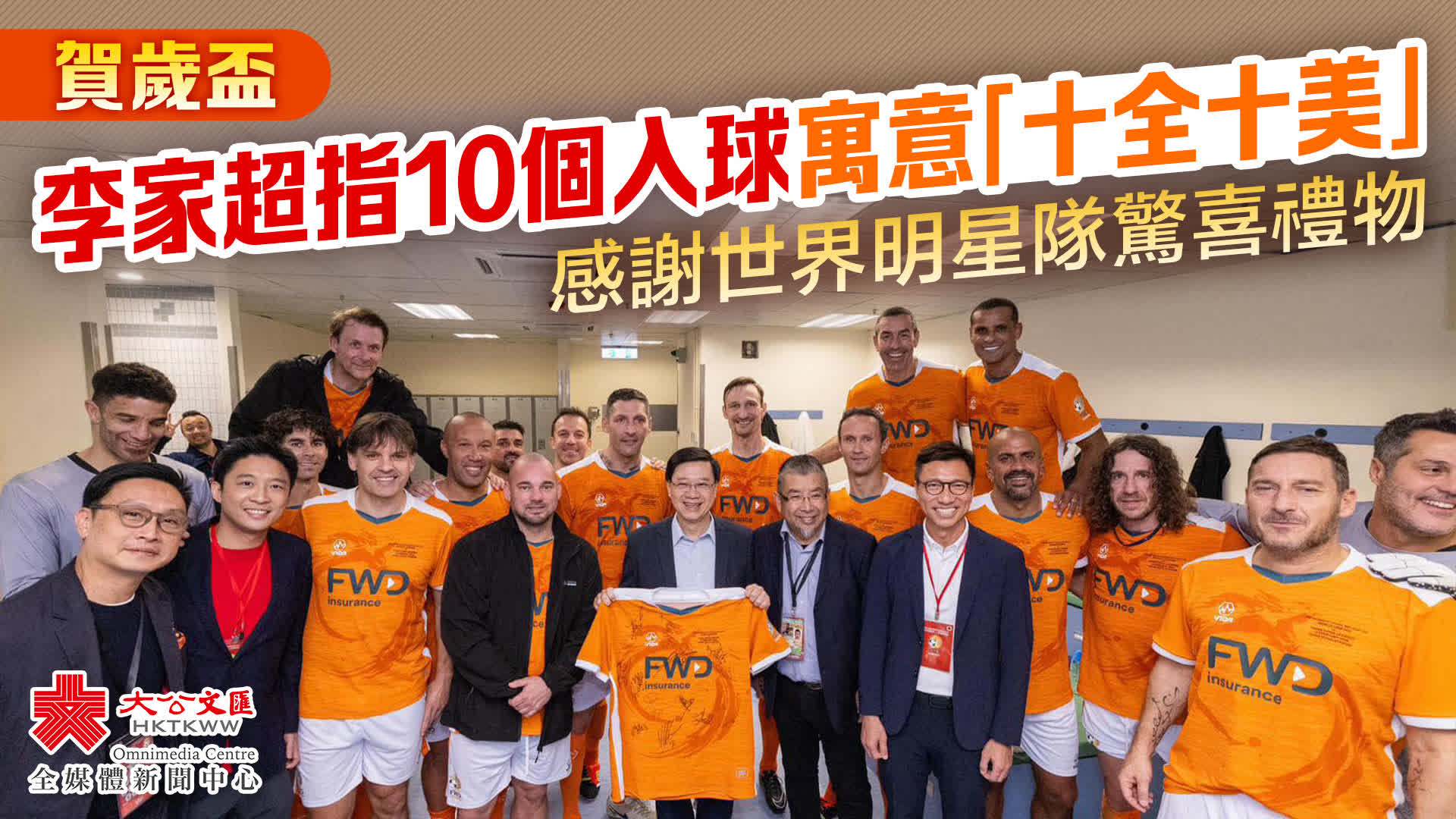 李家超今晚在社交平台發文指,比賽期間,雙方球員落力為大家表演精湛球技,觀眾都看得十分投入和開心。「世界明星隊」最終以7比3取勝,「香港明星隊」表現出色,雖敗猶榮。球賽全場共有10個入球,為今個新春假期畫上一個十全十美的句號。「世界明星隊」又特別向全港市民送上驚喜禮物——一件載有他們17位球星親筆簽名的球衣,李家超代表香港市民感謝他們。