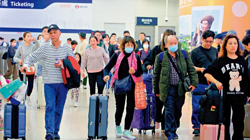(大公報 記者 賴振雄)本港一連四日的新春公眾假期昨日結束,截至昨晚九時,累計超過376萬人次出入境,恢復至疫情前水平,當中入境內地旅客有逾64萬人次,每天有200個內地團來港;港珠澳大橋使用量創新高,「港車北上」年初三錄得8000架次。