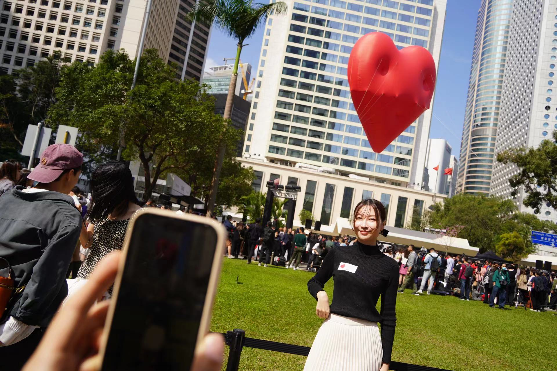 活動今早於中環皇后像廣場舉行開幕典禮,在眾嘉賓致辭後,李家超和影星劉嘉玲等人,把手中的心型卡放進主禮枱裝置,他們身後的巨型紅心Chubby Hearts即徐徐升上半空。