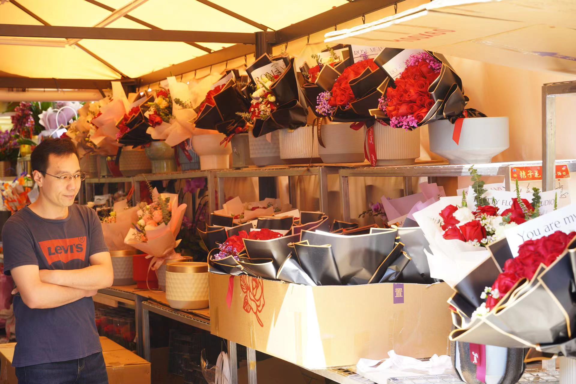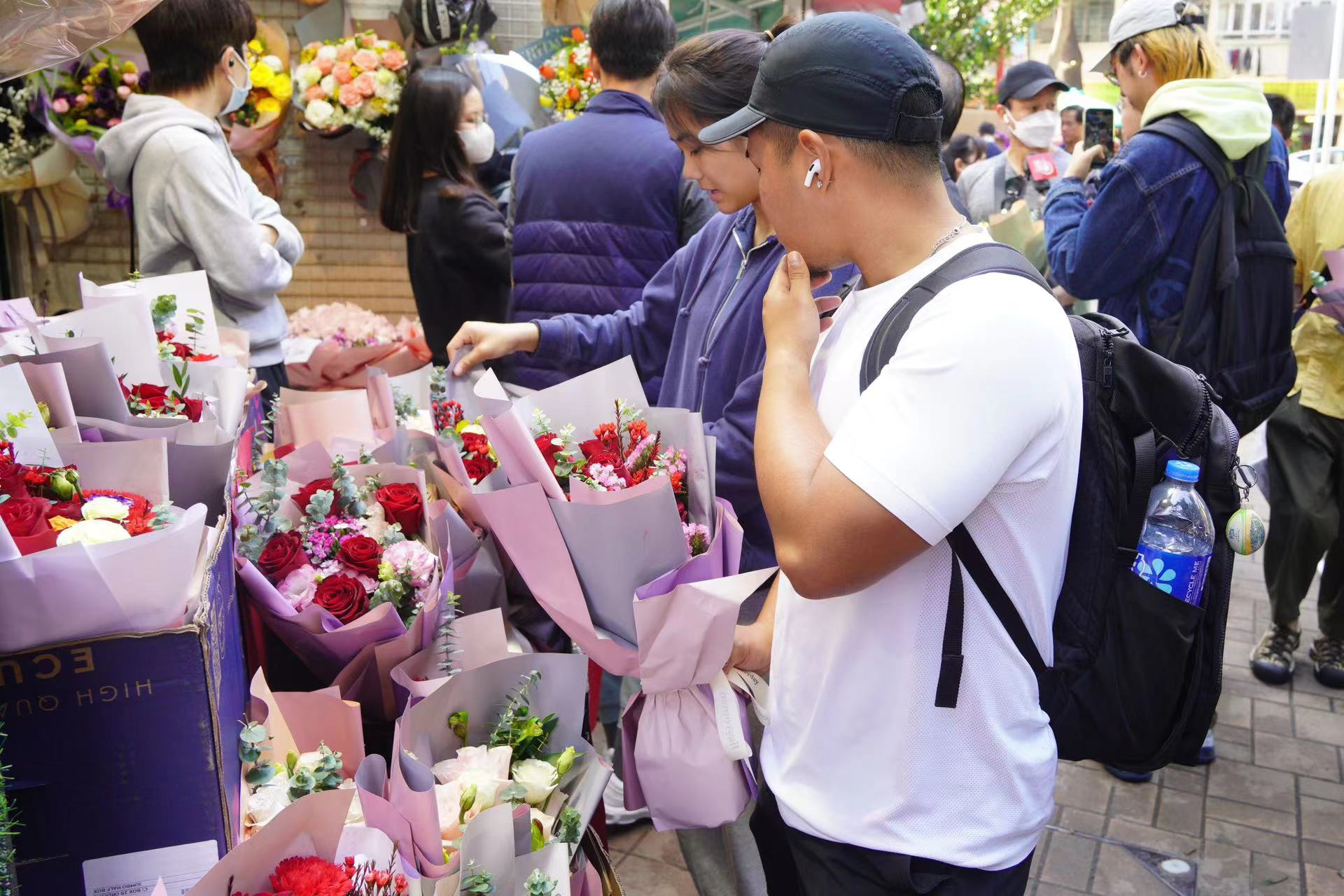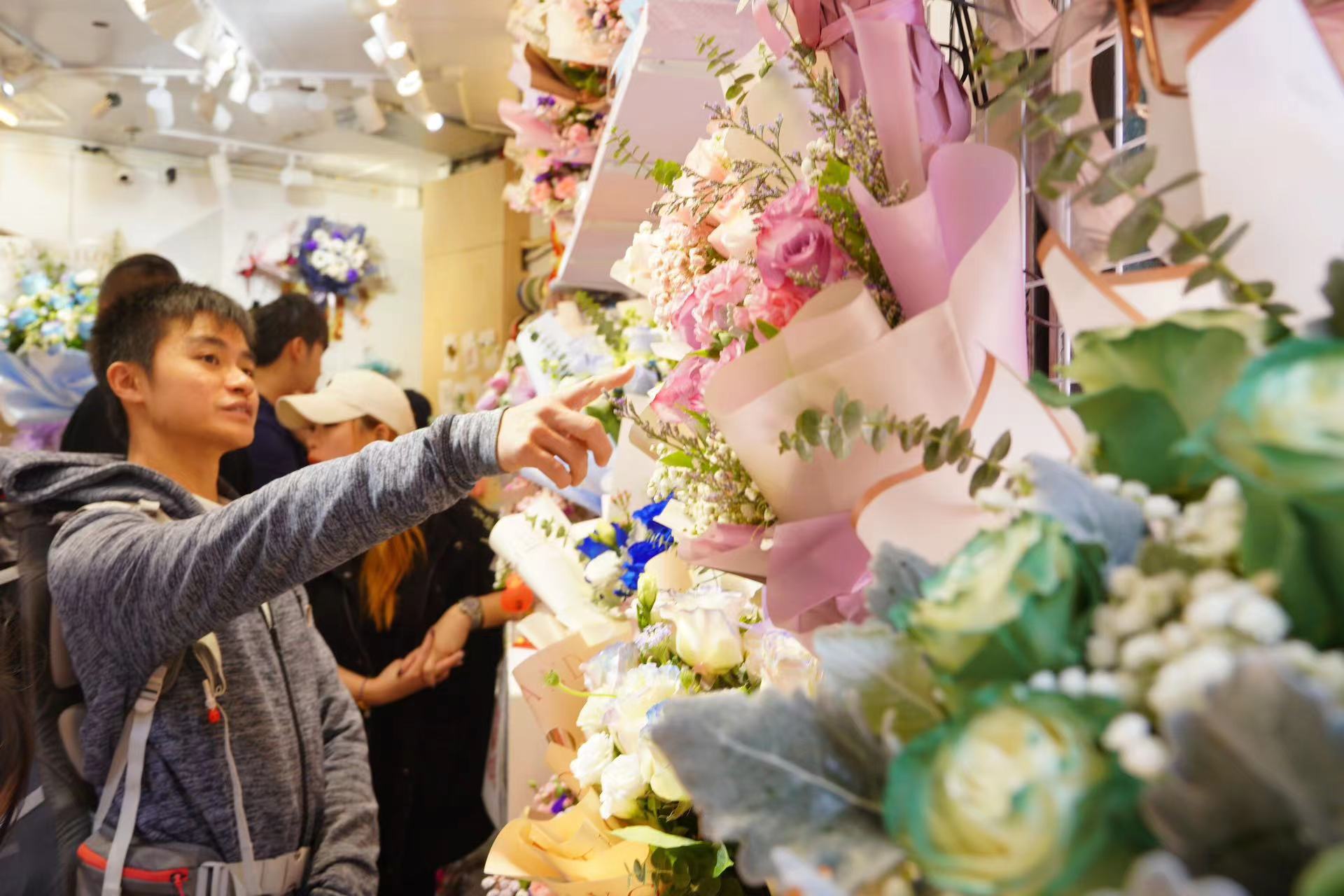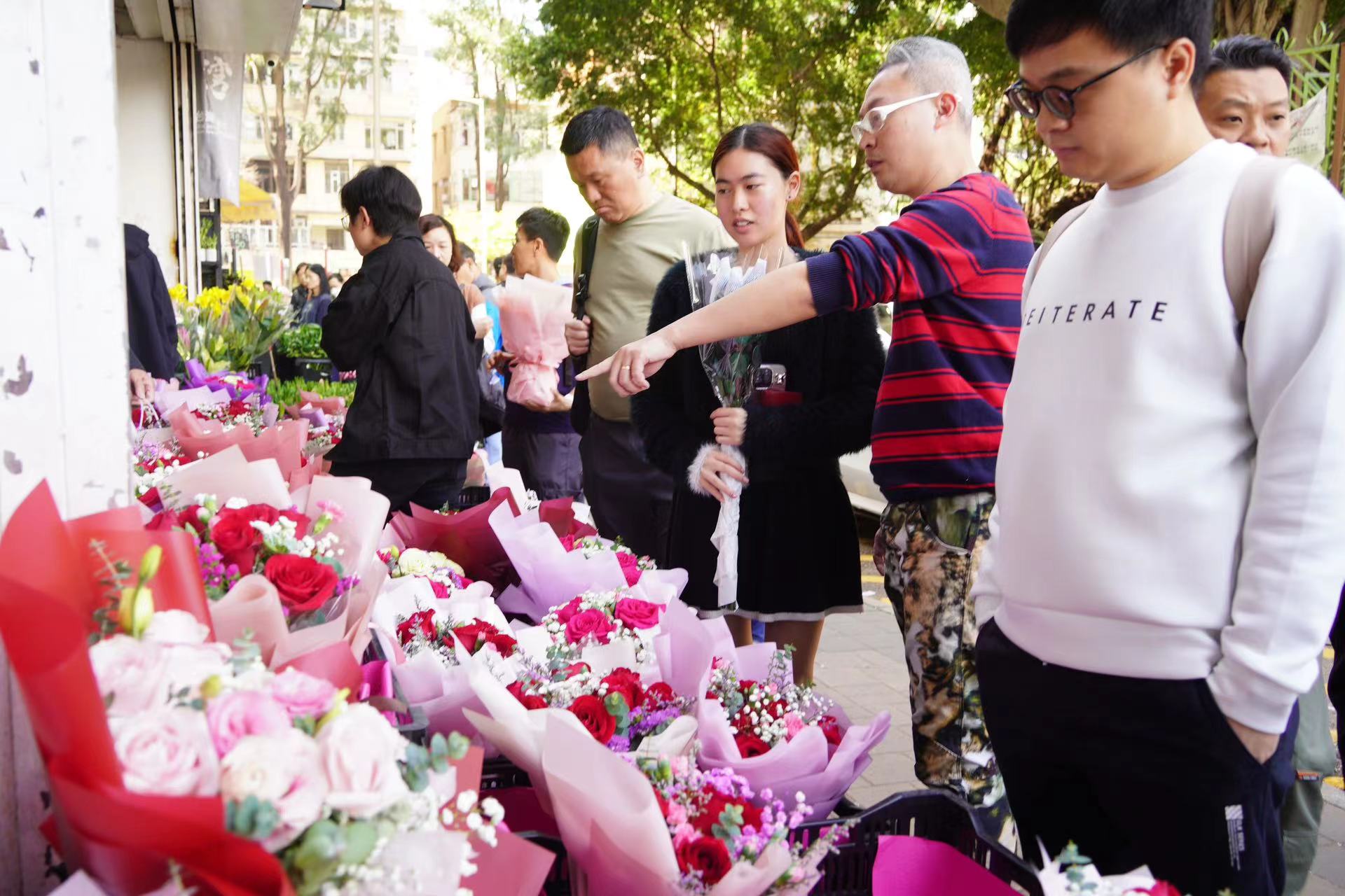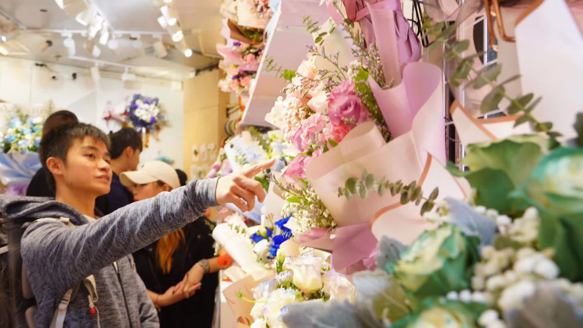 有男士表示,揀選太太喜歡的玫瑰花送給對方,希望她年年都那麼開心,價錢380元,與往年情人節差不多,屬於合理水平,但就比平日貴大約一倍。