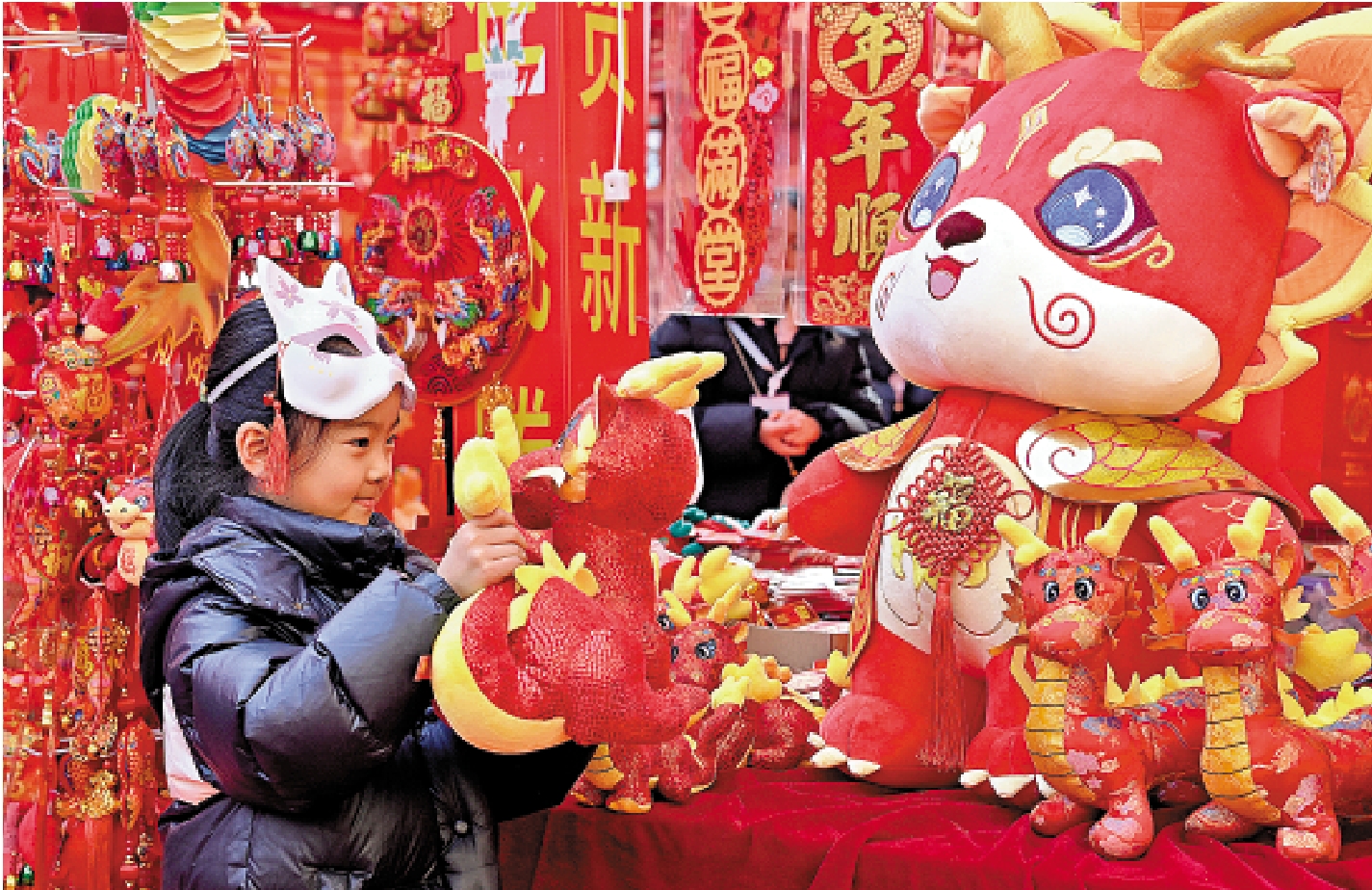(大公報 記者 曾萍)文創龍枕賣萌、非遺「壯錦龍寶」、可愛春聯掛飾……隨着農曆龍年的到來,身邊與「龍」相關的物品也越來越多,無論是在線下的商場超市,還是線上的電商平台,不少品牌都瞄準春節消費「黃金周」,推出國潮系列商品。從節日服飾到零食堅果、從老字號品牌到文創「新年貨」,都融入了中國風、龍年生肖等「國潮」元素。中國龍與時尚潮流相結合,各種龍年限定、龍年聯名產品進佔消費「C位」,成為拉動春節經濟的龍頭。
