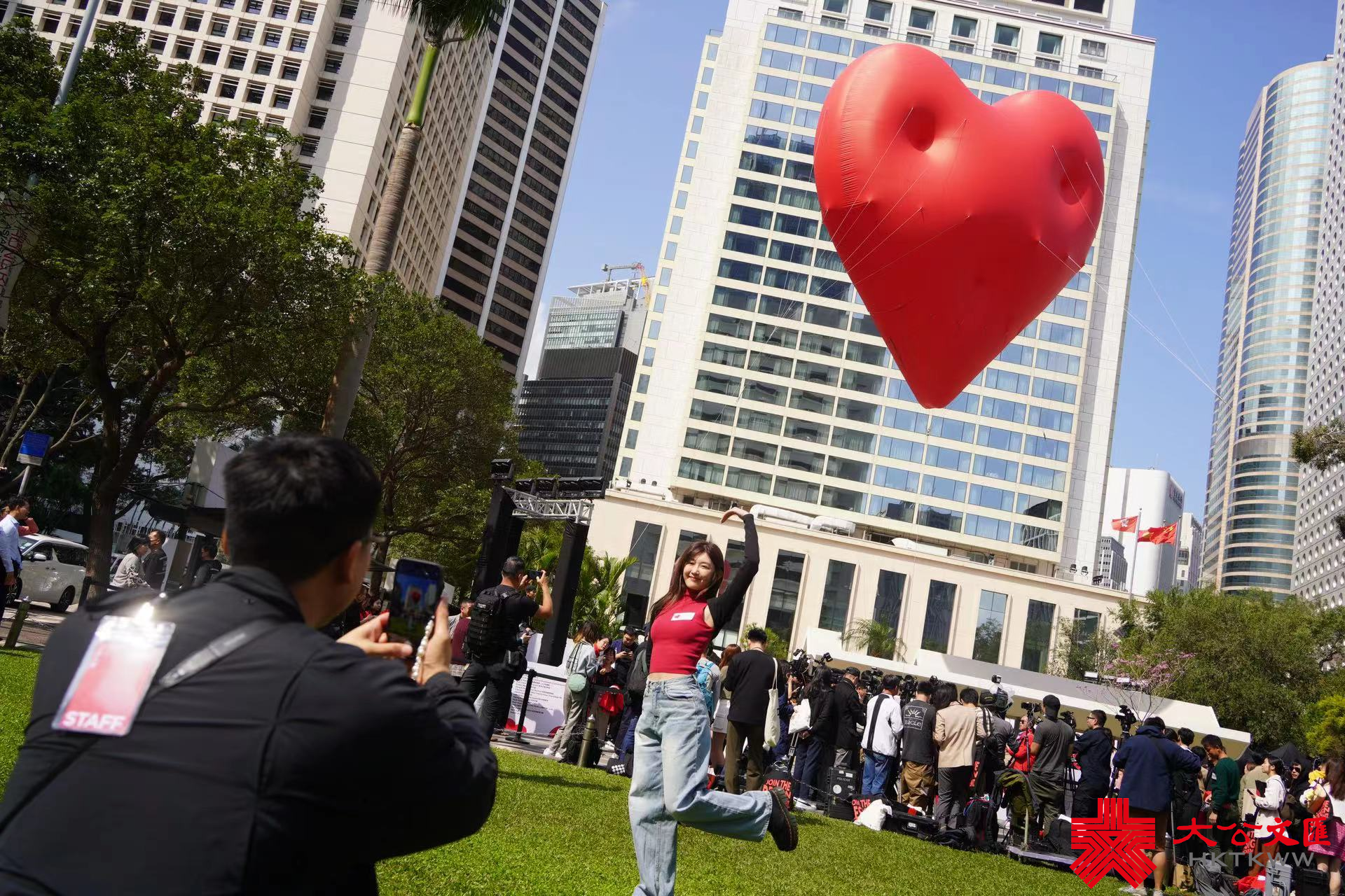 大公文匯全媒體報道,由「文化藝術盛事基金」資助的「Chubby Hearts Hong Kong」巨型飄浮紅心裝置,即日起至元宵節期間在中環皇后像廣場花園展出。文化藝術盛事委員會委員伍婉婷今日(15日)在一個電台節目表示,活動氣氛很好,相信可以吸引旅客及情侶打卡,除了帶動經濟及旅遊,亦為市面帶來正能量和開心氣氛。