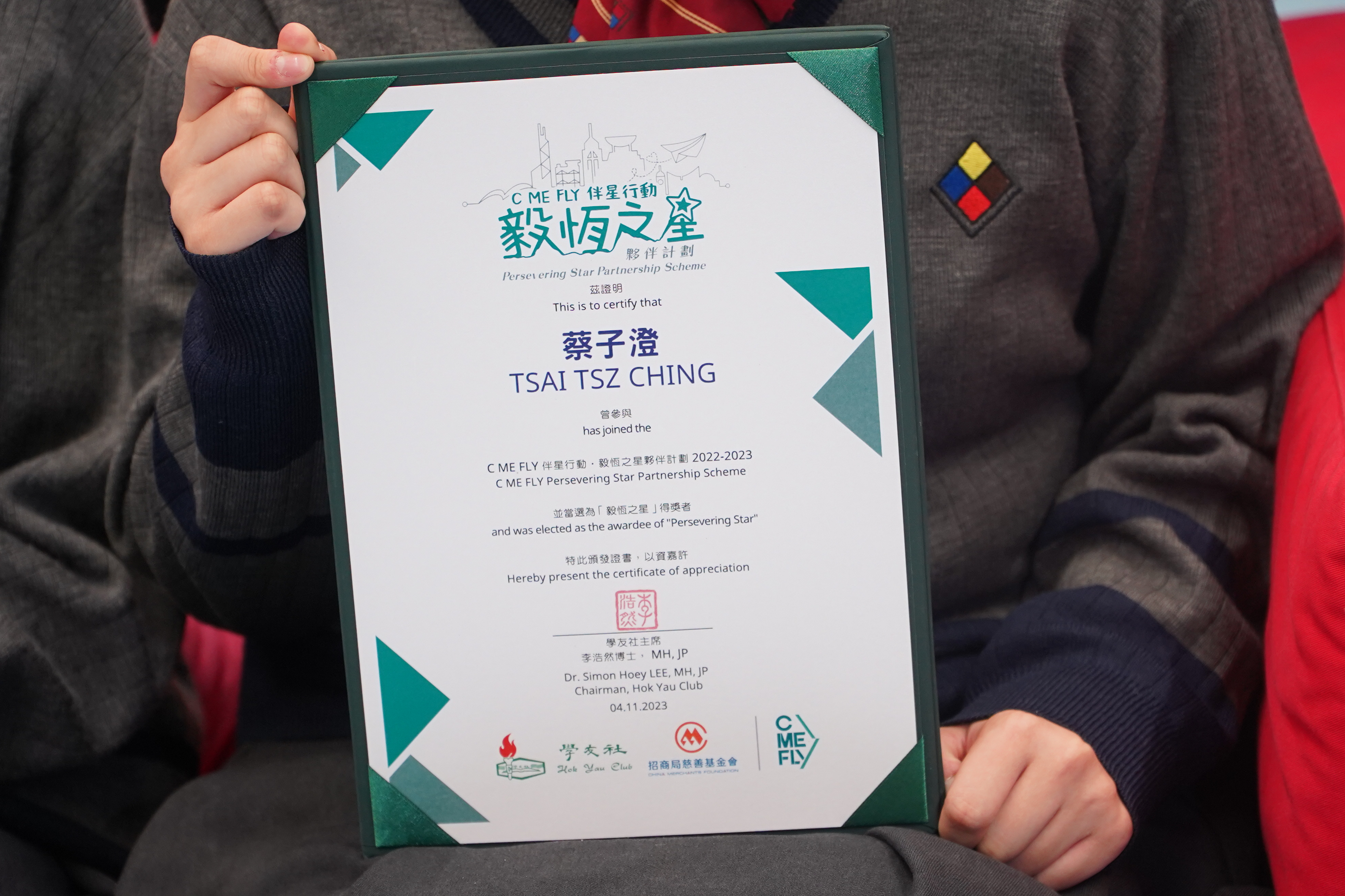 去年,子澄的經歷獲學校推薦,成為「毅恆之星」得獎者。她向記者表示,感激老師和學校的幫她「從谷底行返上去」,令她變得開朗和積極。義工服務經歷不僅充實了子澄的生活,讓她切實體會到發揮個人力量幫助他人,實現人生價值,亦令她找到了努力的方向——立志成為一名社工,為有學習、情緒和行為問題的學生提供心理支援。