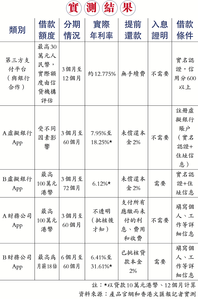網絡科技的發展令生活變得更便利,借錢亦易過借火。現今的第三方支付平台、虛擬銀行等網貸App雖然都根據《放債人條例》持牌,但貸款申請過於寬鬆,香港文匯報記者實測坊間5個借貸平台,發現大多數無須通過還款能力測試、無須入息證明,更無須像傳統銀行和財務公司見面審核,宣稱最快1秒發款,最高借款額高達月薪的18倍,實際年利息多達31.61%,提早還款還需繳交相當於餘下本金2%罰款。