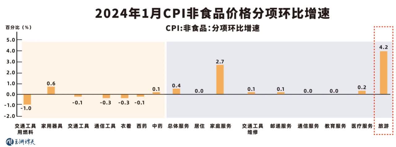 就拿春節期間火爆的旅遊來說,低成本和便利的出行促進了旅遊消費。在一月的基礎上,二月的旅遊消費數據肯定會進一步提高,這個變化會體現在大家熟知的居民消費價格指數(CPI)中。