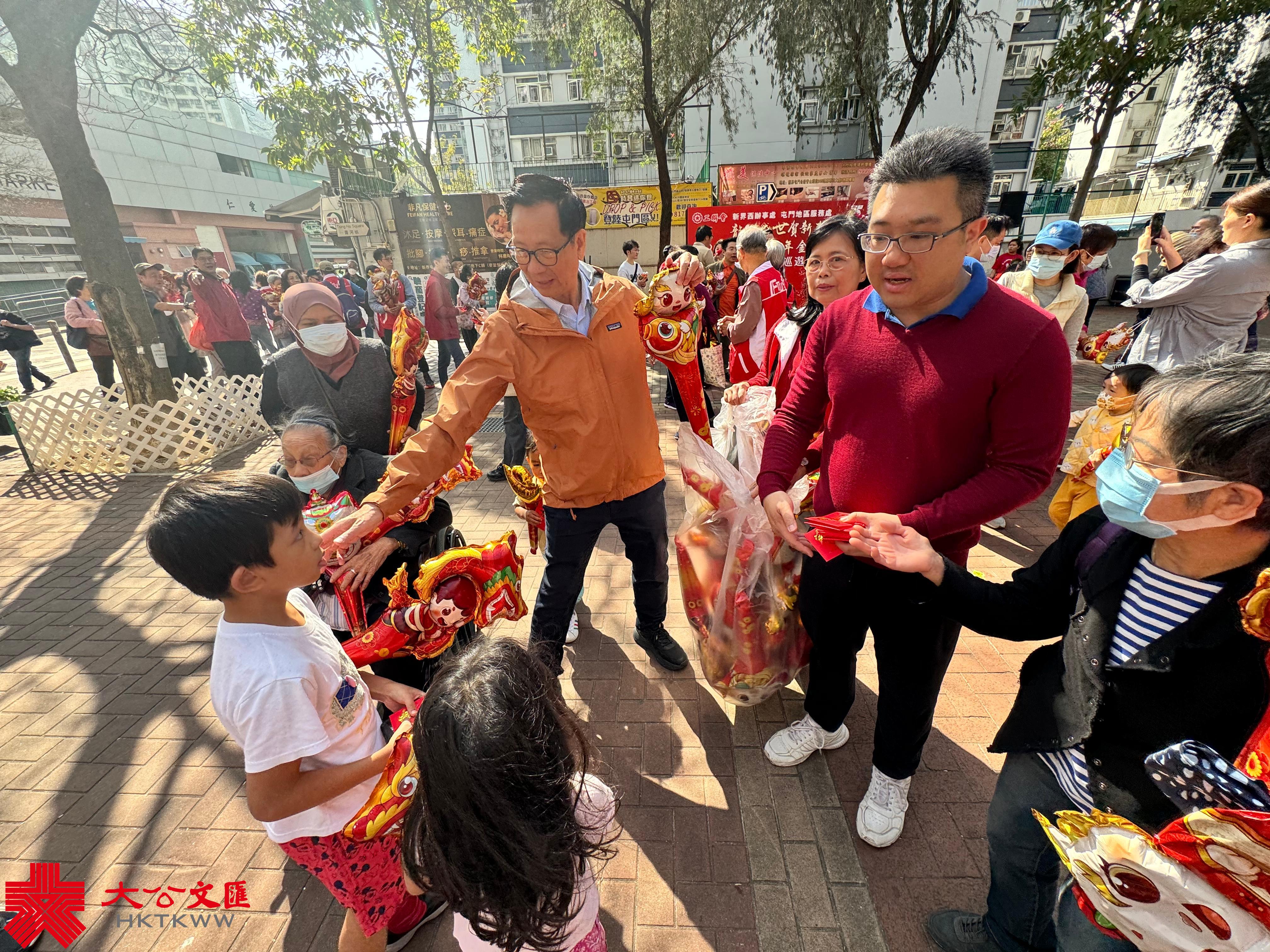 (大公文匯全媒體 記者 李九歌)由工聯會新界西辦事處、工聯會屯門地區服務處合辦的「龍騰盛世賀新春 2024年甲辰年金龍獻瑞 新界西新春花車巡遊」今日(18日)舉行。花車首站為屯門區,途徑元朗、青衣、葵涌,並將以荃灣作為終點。工聯會一眾立法會議員、區議員、社區主任等參與活動,向新界西的市民們拜年。