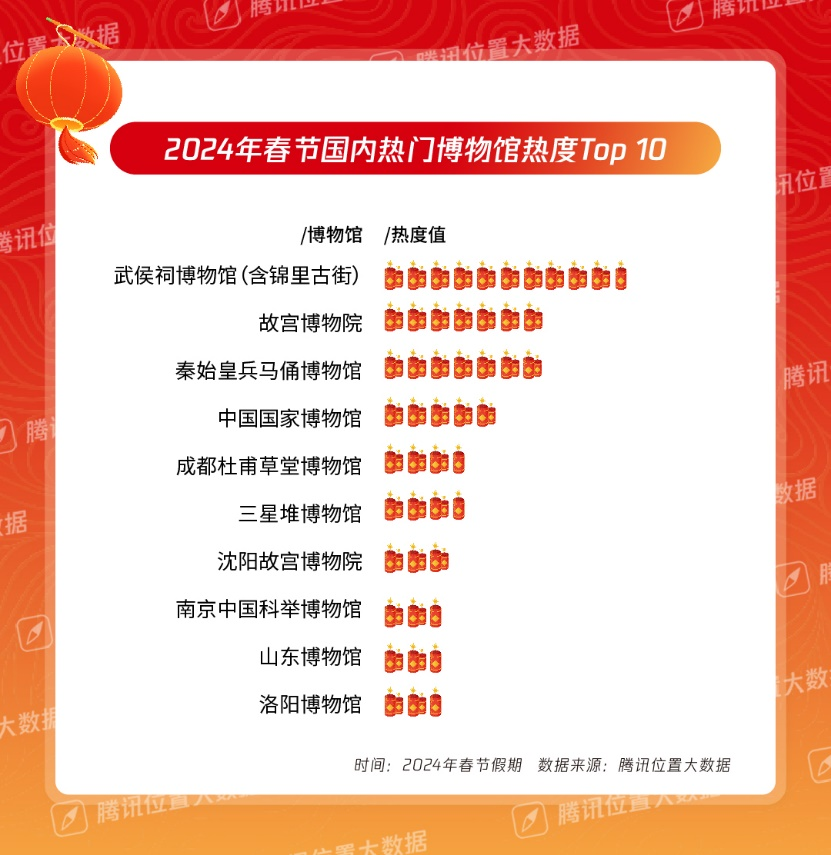 隨着文化自信建設的逐步深入,假期逛博物館正成為一種新的風尚。在全國近200個一級博物館中,武侯祠博物館(含錦裏古街)、故宮博物院、秦始皇兵馬俑博物館的熱度位居前列。值得注意的是,四川成為博物館最熱省份,在博物館熱度前十名中,武侯祠博物館、成都杜甫草堂博物館、三星堆博物館、金沙遺址博物館均來自四川。