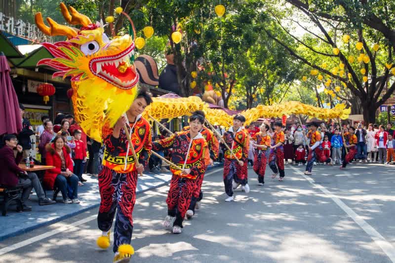 隱賢山莊開展「尋年味」主題系列活動,精心策劃歡樂大巡遊,為遊客們帶來一場視覺與聽覺的盛宴。龍鳳山莊影視旅遊區上演春節煙花匯演、潮玩基地LUKA3D激光秀等。南社明清古村舉辦「行運一條龍」巡遊、鄉村音樂會、美食街等遊園活動,為市民遊客提供豐富多彩的文旅項目,持續營造濃烈的新春節日氛圍。