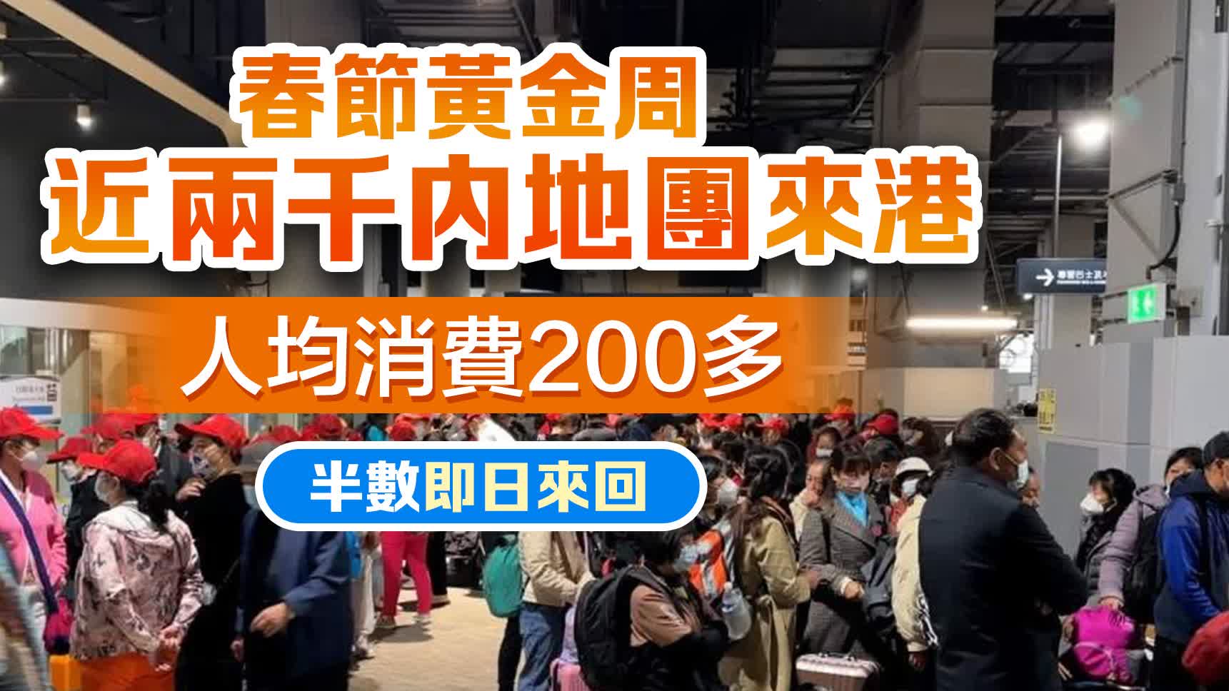 大公文匯全媒體報道,大批內地遊客趁一連8日春節黃金周訪港,來港旅客人次超過2018年同期水平。旅遊業議會總幹事楊淑芬今日(19日)在一個電台節目表示,訪港內地旅客數字屬預期之內,不過內地旅行團數字高於預期,有半數團即日來回,人均消費約200至300元,屬合理水平。