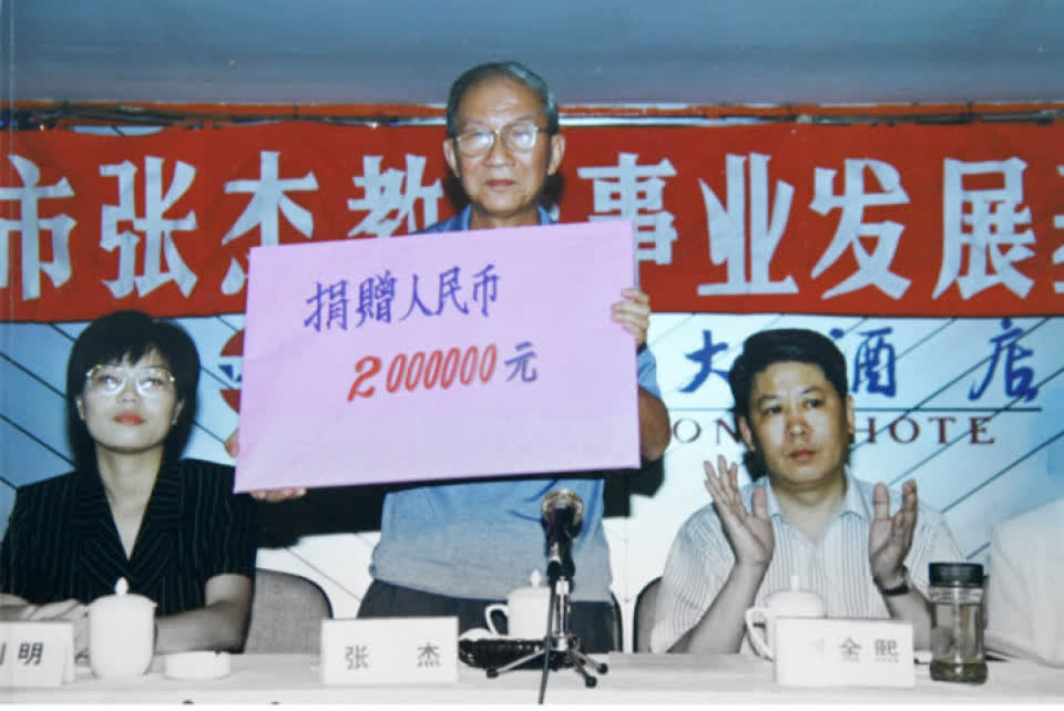 1500萬元的捐款額不算很多,但對小販出身的張杰而言卻是省吃節用後的傾囊而出。張杰出身於貧困家庭,小學未畢業即出外謀生,輾轉來到香港,多年打工之後,在尖沙咀加連威老道租了一間約60呎的樓梯口,做起出售糉子、茶葉蛋、螃蟹等小本生意。他平時對自己很苛刻,但幫助家鄉年輕人接受教育時卻非常大方。古稀之年,家人決定為他做壽,他卻將5000元壽金捐了出去。有次家鄉派人來港看望他,才驚訝地發現這位大家心目中的「老闆」竟然住在300多呎的蝸居中。當家裏招呼客人時,張杰就打地鋪休息,他也自嘲是一位「睡地板」的「老闆」。