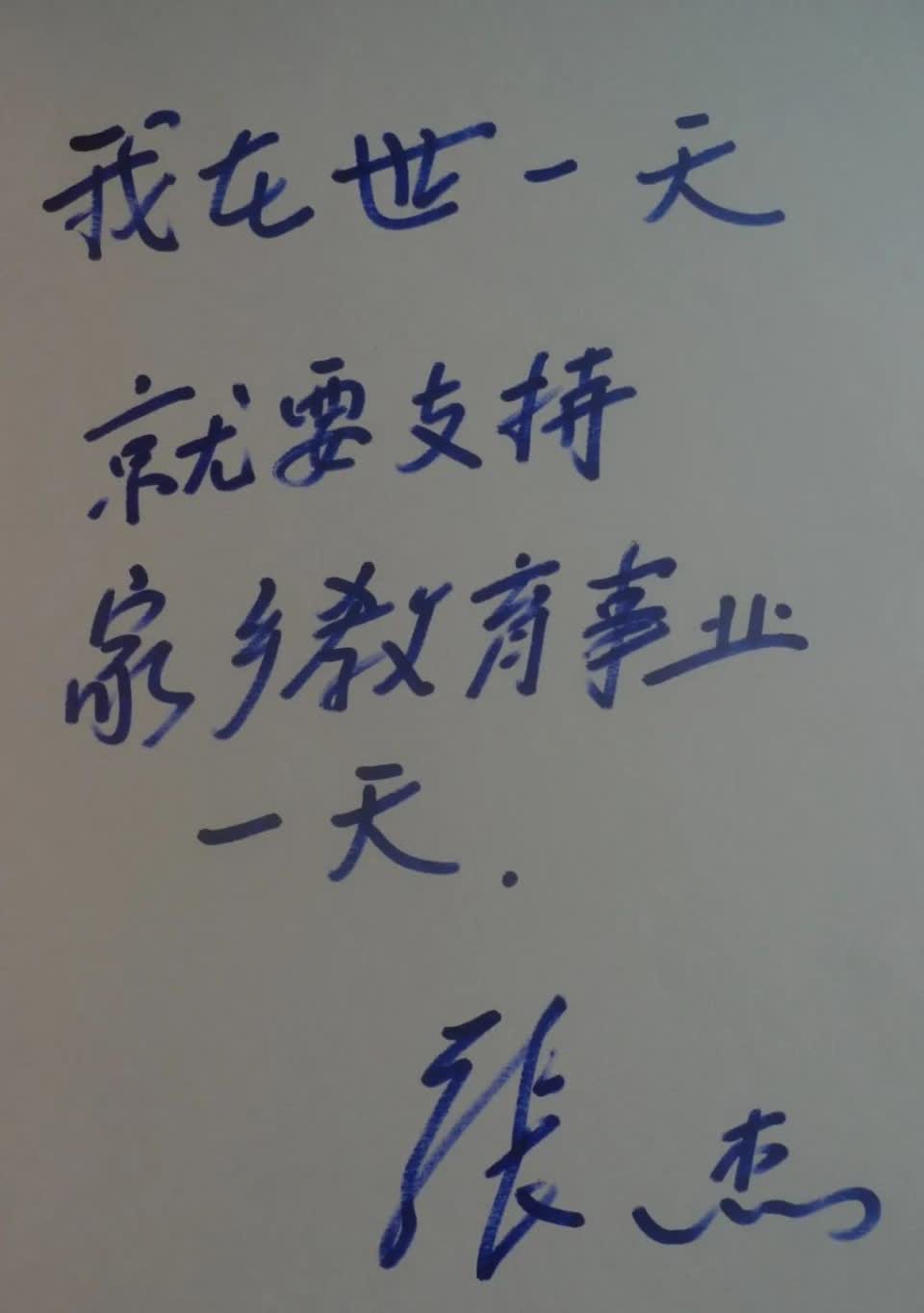 張杰有條件改善自己的生活環境,卻將辛苦賺來的錢資助家鄉辦學,所為何來?原因就是兒時沒有條件接受教育,艱難的謀生路引發並堅定了自己捐資興學的平生意願。他曾告訴當地記者:「中國之所以長期貧窮落後,關鍵是教育落後,中國要富強,一定要把教育搞上去。但人口多,攤子大,光靠政府是不夠的,要全民來支持教育,捐資興學才行。」