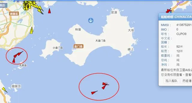 台灣《聯合報》19日援引「中國港口網」資訊報道稱,當日午後有6艘大陸海警執法船在金廈海域周邊航行,較上午的4艘還增加兩艘。根據位置資訊,這六艘大陸海警執法船正分為兩隊,緊貼所謂的「禁止、限制水域」線環繞金門航行。