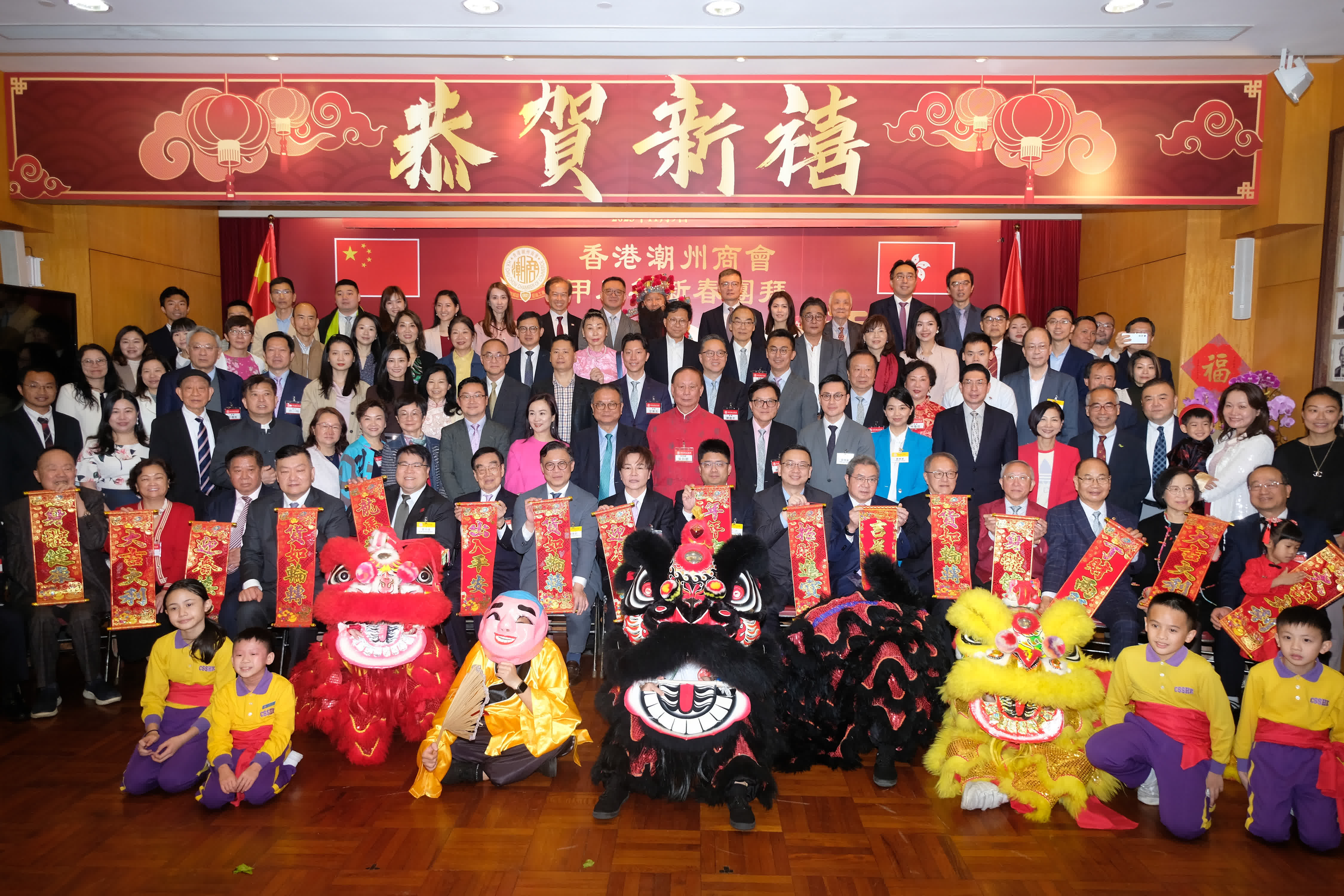 (大公文匯全媒體記者 吳俊宏)香港潮州商會甲辰年新春團拜今日(20日)在潮州會館會所禮堂舉行。會長馬鴻銘致辭時表示,龍年首個工作日,廣東省委、省政府在深圳召開全省高質量發展大會,加速建設現代化產業體系,不斷塑造發展新動能新優勢。香港潮州商會亦要有創新發展的理念,助力粵港澳大灣區經濟和社會發展,乘着共建「一帶一路」倡議的東風,為國家、香港和家鄉作出新的貢獻。