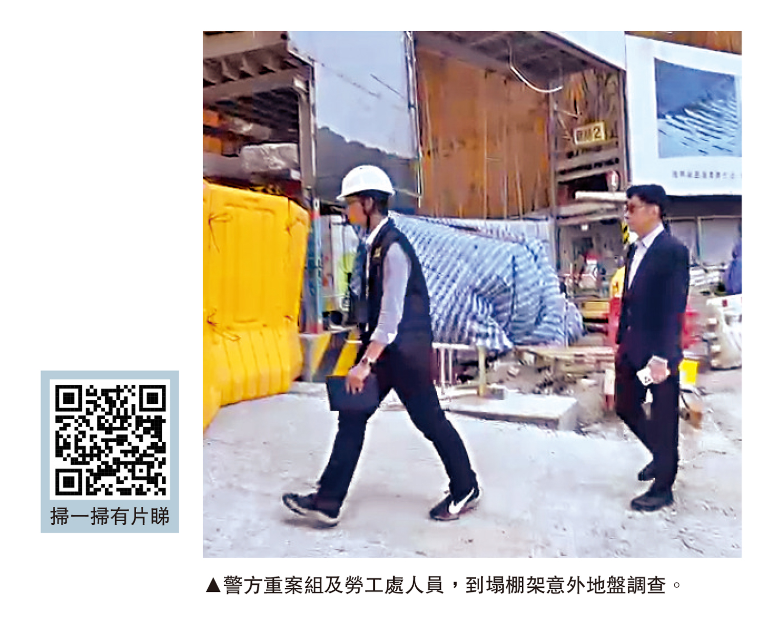 警方重案組探員及勞工處人員昨日上午到意外地盤調查,而塌下的棚架仍未移除。勞工處昨日起展開為期兩周的特別巡查行動,針對性巡查全港架設大型竹棚架的建築地盤,包括檢視該等竹棚架的安全及穩固情況,以保障工人的工作安全。