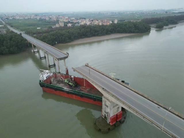 廣州海事局通報,2月22日05時30分左右,一艘集裝箱船空載從佛山南海開往廣州南沙途中,航經洪奇瀝水道時觸碰瀝心沙大橋橋墩,致瀝心沙大橋橋面斷裂,事故原因和傷亡情況正在調查核實。相關部門已趕赴現場全力開展應急救援工作。瀝心沙大橋航段和路面已實行臨時交通管制,請過往船舶車輛注意繞行。