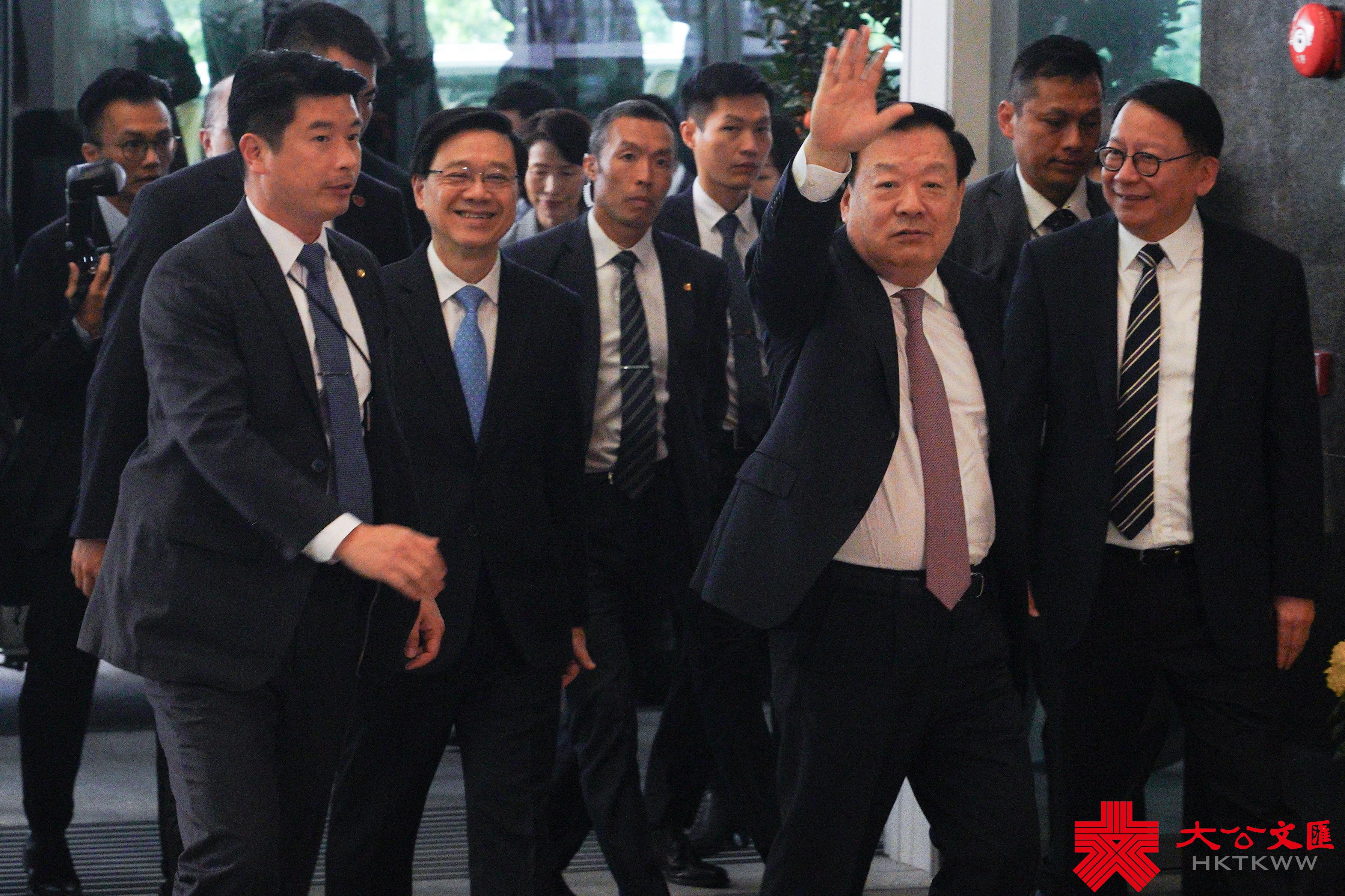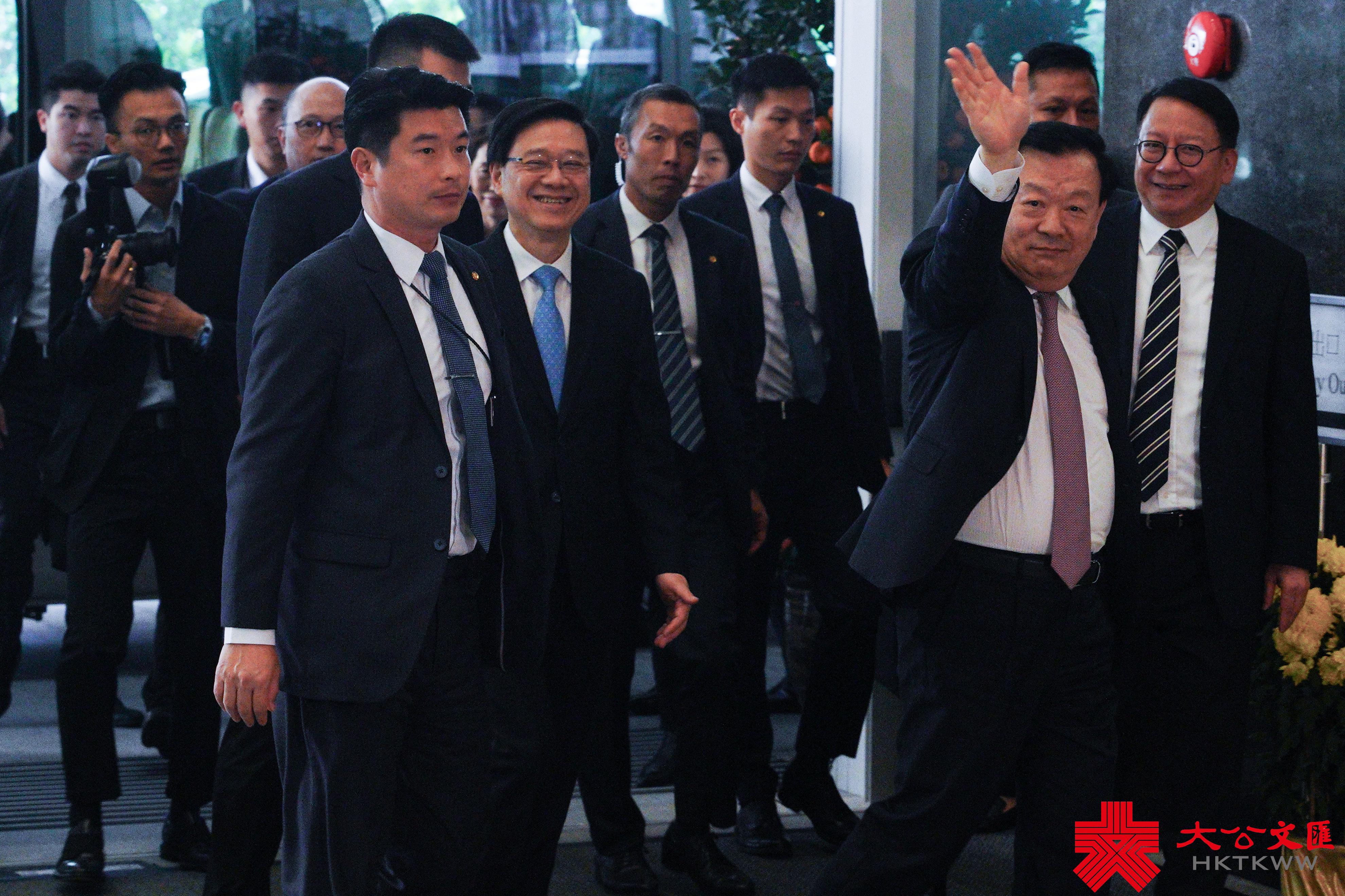 大公文匯全媒體報道,中央港澳工作辦公室主任、國務院港澳辦主任夏寶龍今日(22日)抵港,展開為期7日的考察調研。下午約2時,夏寶龍抵達政府總部,向在場等候的傳媒親切揮手致意,並說「大家好!」行政長官李家超、政務司司長陳國基等官員陪同。