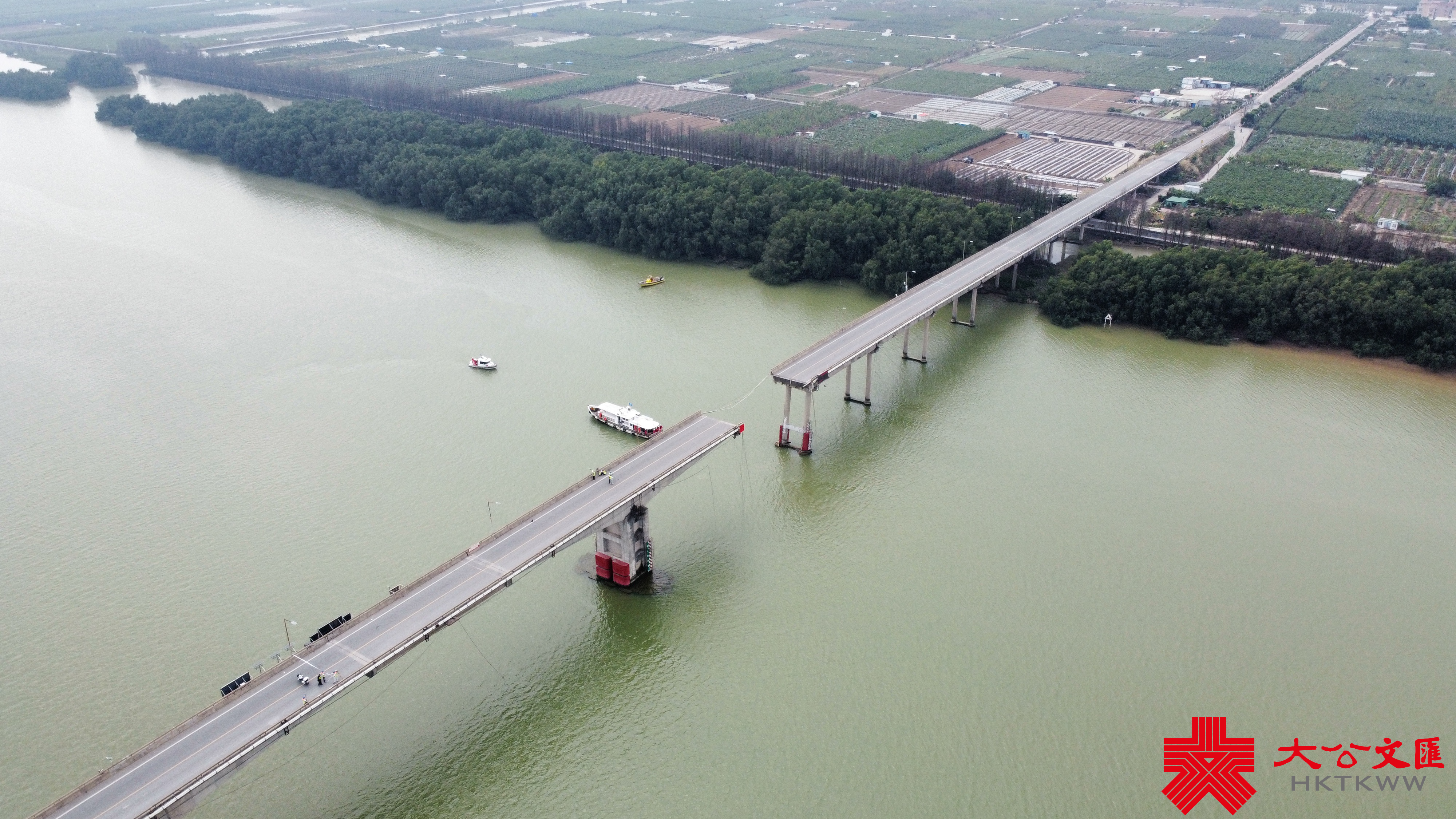 此外,記者還了解到,由於瀝心沙大橋是通往廣州南沙三民島的唯一陸上通道,事故造成橋上通往三民島的唯一供水管整體斷裂。記者從粵海水務了解到,目前三民島已緊急停水,鑒於橋面斷裂無法直接快速搶修接駁通水,需要另行鋪設供水管進行接駁,預計需要四至五天內才能完成施工並恢復正常供水。