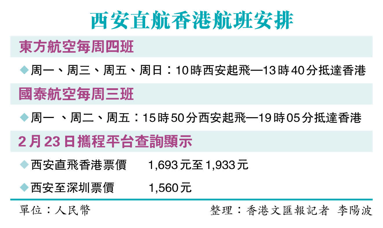 經香港文匯報記者查詢內地多家旅遊票務平台得知,目前西安直飛香港航班每周有七班,其中周四和周六均無航班。「雖然還有一些中轉航班,但大多都是+1天才能到來,更不合適。」王靜希望,未來隨着赴港西安遊客的大量增加,是否可以實現每天均有航班,早中午都會執飛,這樣不僅解決了運力問題,同時也讓遊客的出行計劃有一個更省時省力的安排,也會極大地提升赴港的旅遊體驗。