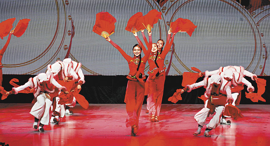 在晚會上,駐港部隊三軍儀仗隊獻上了槍操表演《香江衛士》,展現了人民軍隊的威武雄姿,軍民魚水一家親。陝北群舞《歡慶秧歌》的歡快歌舞炒熱現場氣氛,來自中國煤礦文工團的演員將秧歌舞、安塞腰鼓、現代舞融合,激昂的腰鼓節奏、熱情洋溢的大紅綢,讓現場觀眾心潮澎湃。