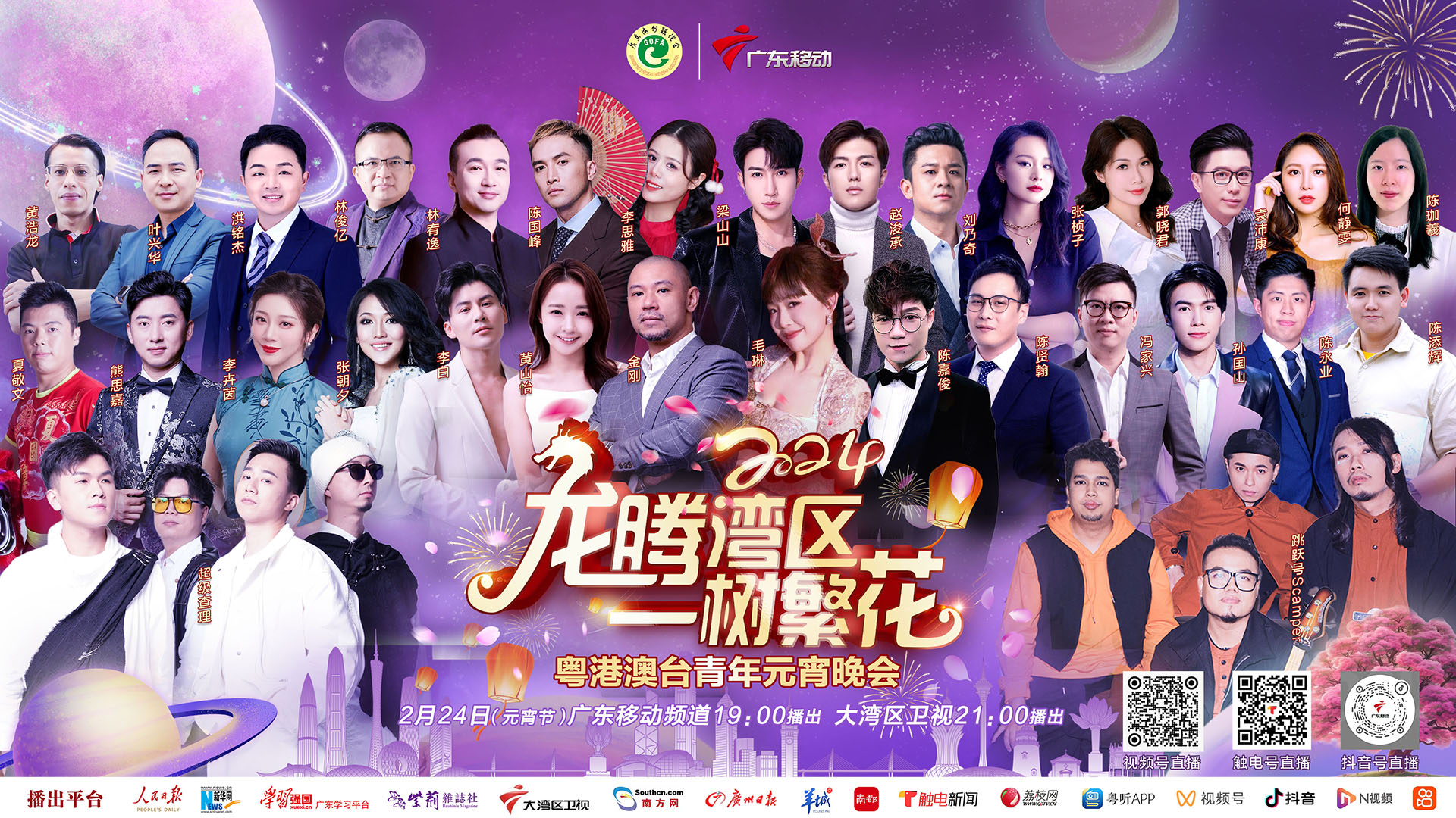 大公文匯全媒體報道,適逢元宵佳節,「龍騰灣區·一樹繁花——2024粵港澳台青年元宵晚會」將於今日(24日)19時播出。該晚會由廣東海外聯誼會、廣東廣播電視台主辦,廣東省人民政府台灣事務辦公室、廣東省人民政府港澳事務辦公室、中央政府駐港聯絡辦廣東聯絡部、中央政府駐澳聯絡辦廣東聯絡部、粵港澳青年演藝創意聯盟及省內各地海外聯誼會等協辦,大公文匯網將進行直播。