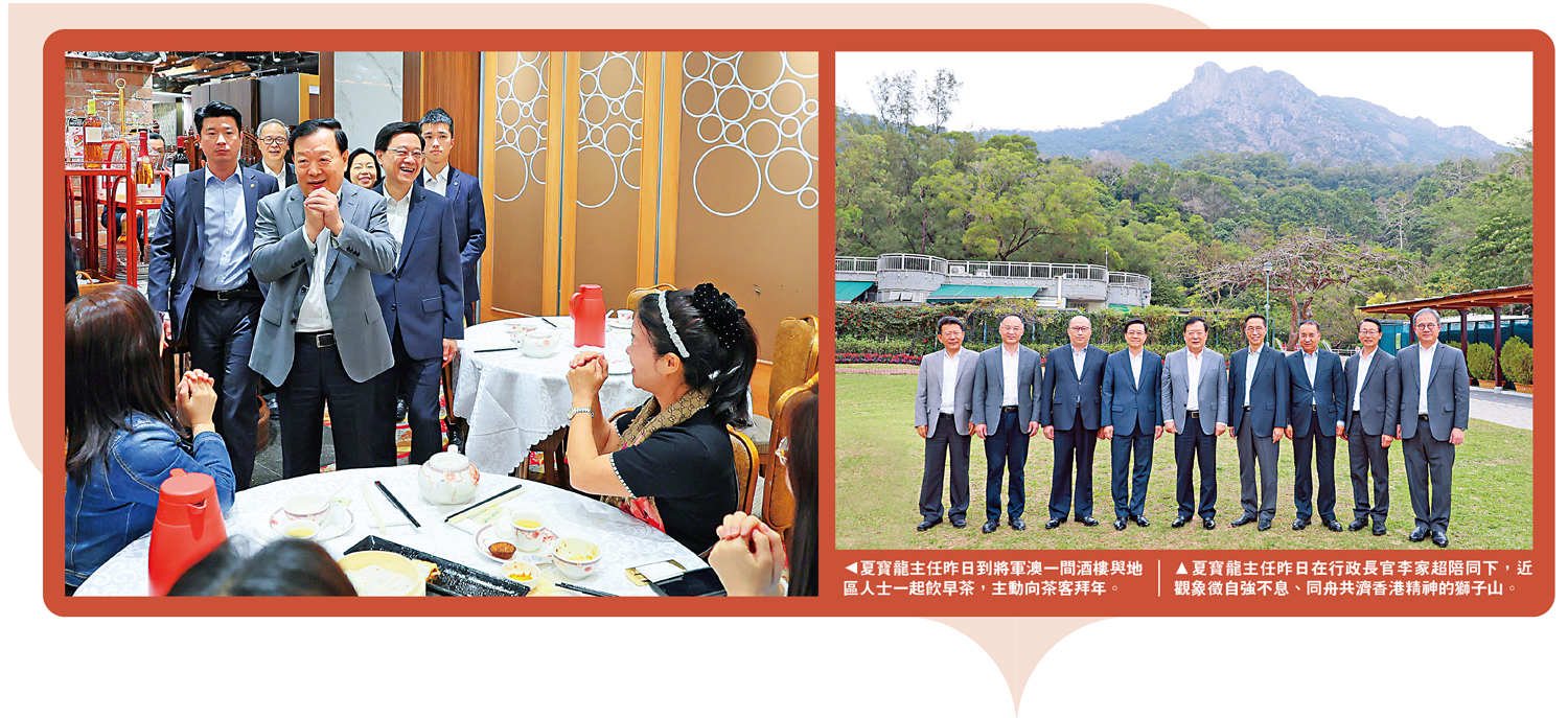 梁熙說,夏主任深入社區,視察了多個地方民情,不論是坑口飲茶、西貢海鮮街以及獅子山公園,都是市民及旅客會前往的地方。這反映了夏主任十分接地氣、懂行情,了解香港各區的獨特文化,亦代表了香港要更着力發展好地區特色,以新方向發展好經濟。正如夏主任特別考察的獅子山公園,背後就代表了香港自強不息、同舟共濟的獅子山精神,相信在特區政府的帶領下,我們一定可以克服一切困難,發揮優勢,為香港為國家帶來更大貢獻。
