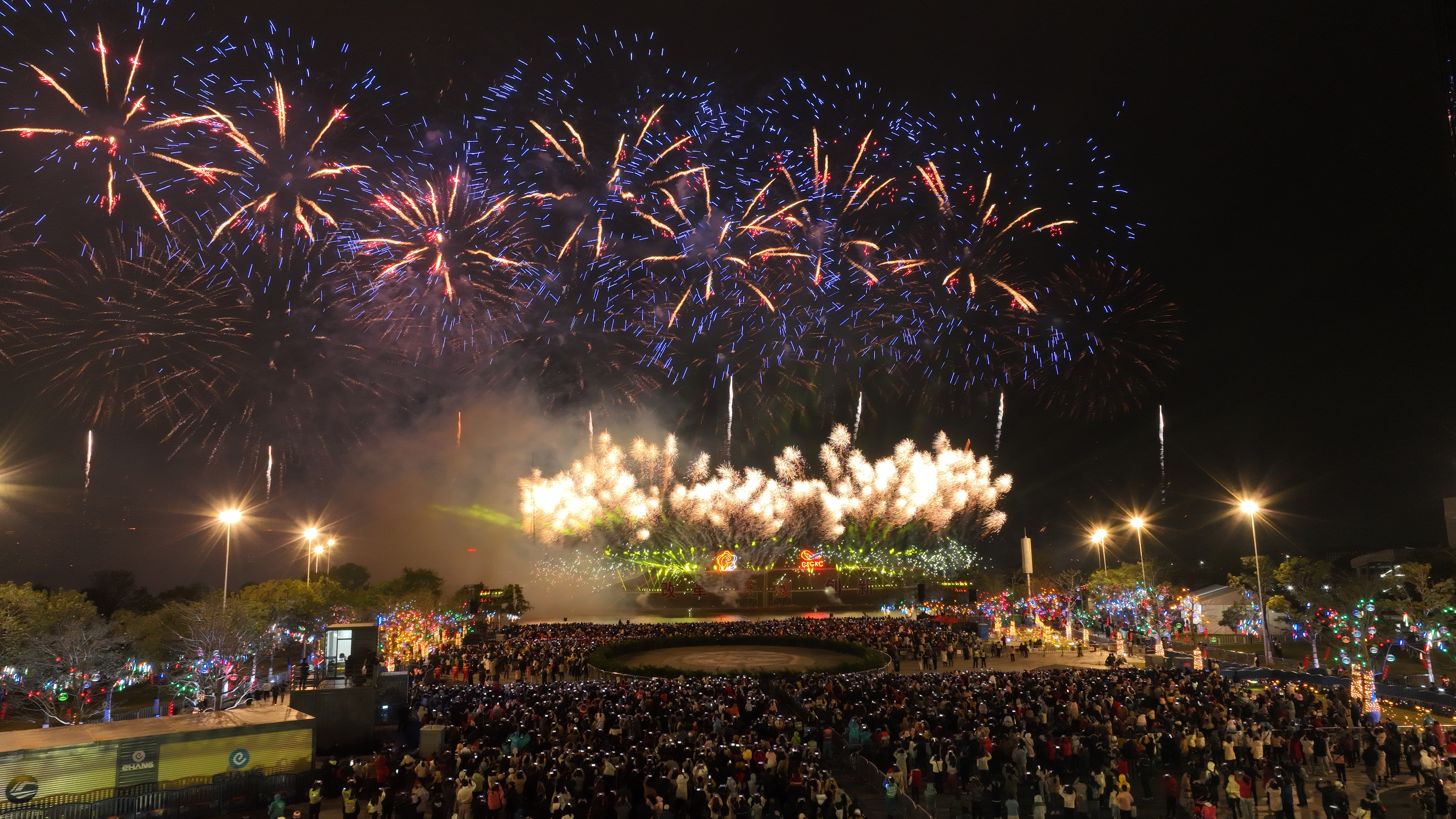晚上8時,一曲由新加坡中樂團帶來的《慶典序曲》奏響,拉開了煙花表演的序幕。隨後,由紅纓束女子打擊樂團演奏的《中國龍》響徹夜空。隨着激揚的旋律,一條金龍躍出九龍湖湖心島的上空,集束發射的爆裂花束在高空綻放,彷彿金龍騰空,夜空瞬時燦如白晝,序章「知識新城龍騰迎新春」正式拉開帷幕。