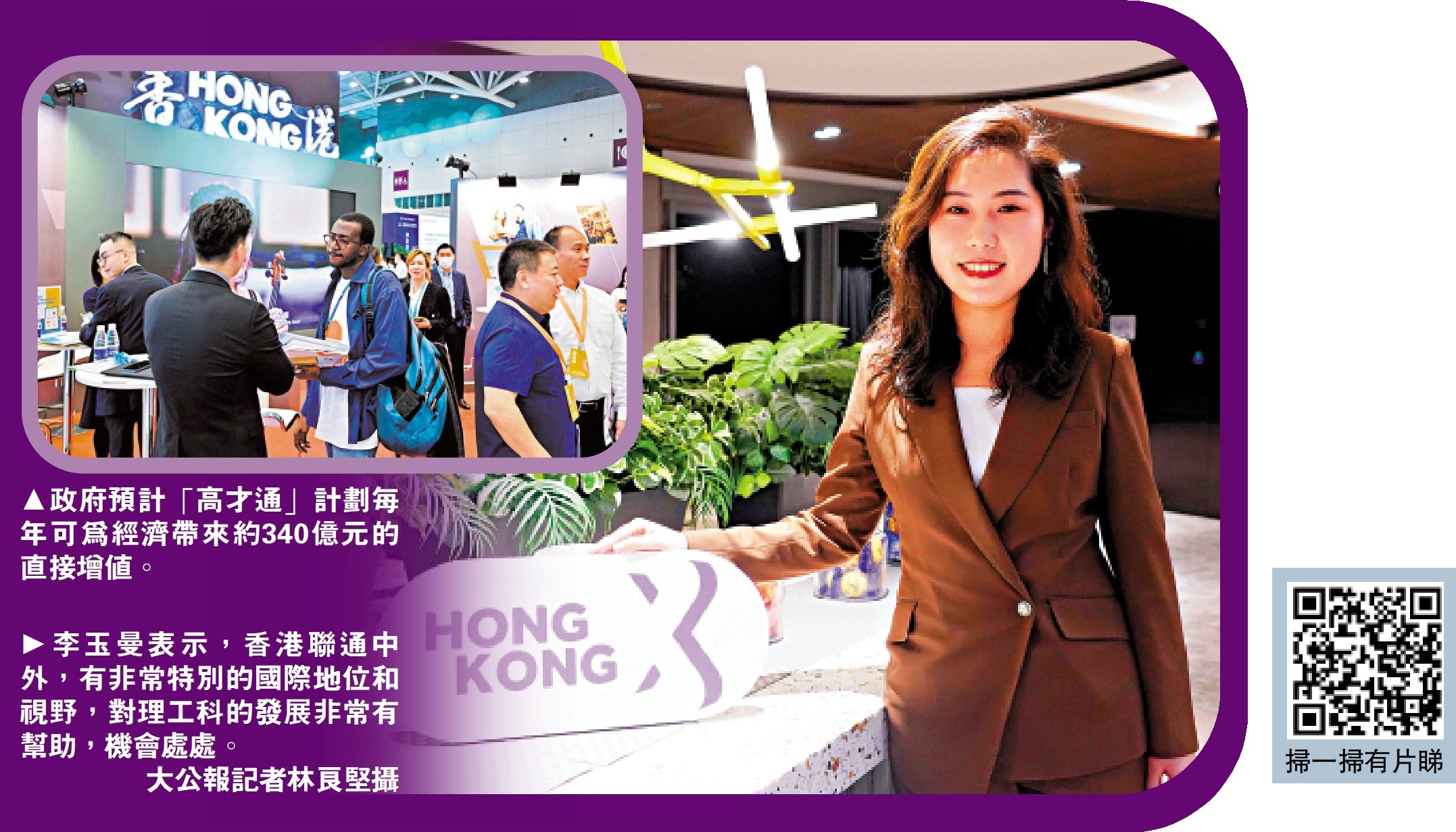 來自河南省的李玉曼去年在港大機械工程系博士課程畢業後,通過「高才通計劃」獲批留港,並在9月加入香港X科技創業平台,從事創投工作。她表示香港聯通中外,有非常特別的國際地位和視野,香港正大力發展建設國際創科中心,對理工科的發展非常有幫助,機會處處,「我的人生在香港有無限的可能性」。