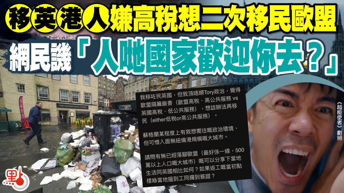 還有移英港人嫌英國高稅想二次移民歐盟,指歐盟高稅、高公共服務,好過英國高稅、低公共服務喎。叫人介紹一些「最好係一線,500萬以上人口嘅大城市」。