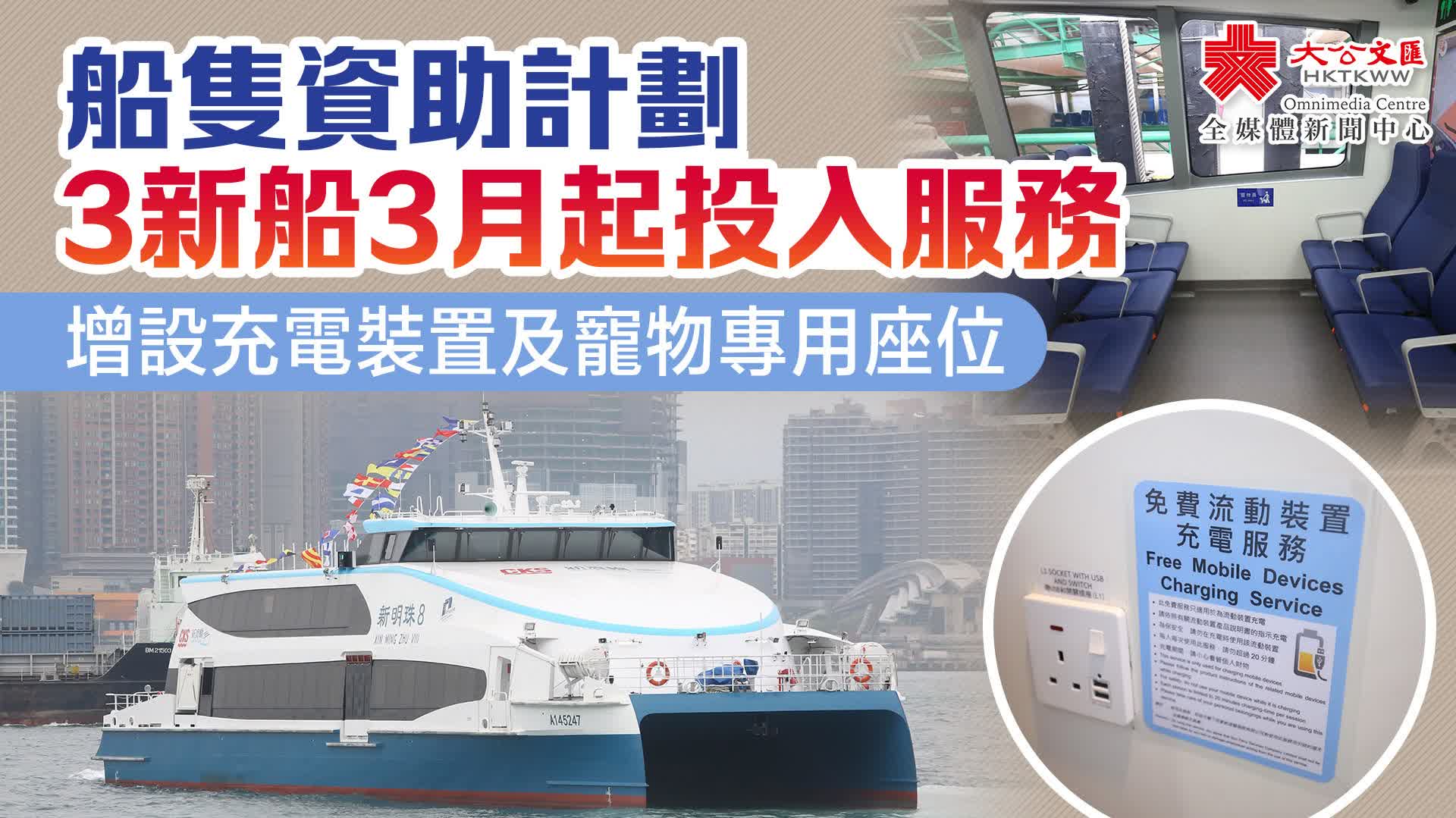 (大公報記者 易曉彤)運輸署今日(27日)公布,首批3艘在第一階段船隻資助計劃下,由政府全數資助採購的新船預計3月起陸續投入服務,營運來往「中環—長洲」、「中環—梅窩」及「中環—坪洲」的航線。