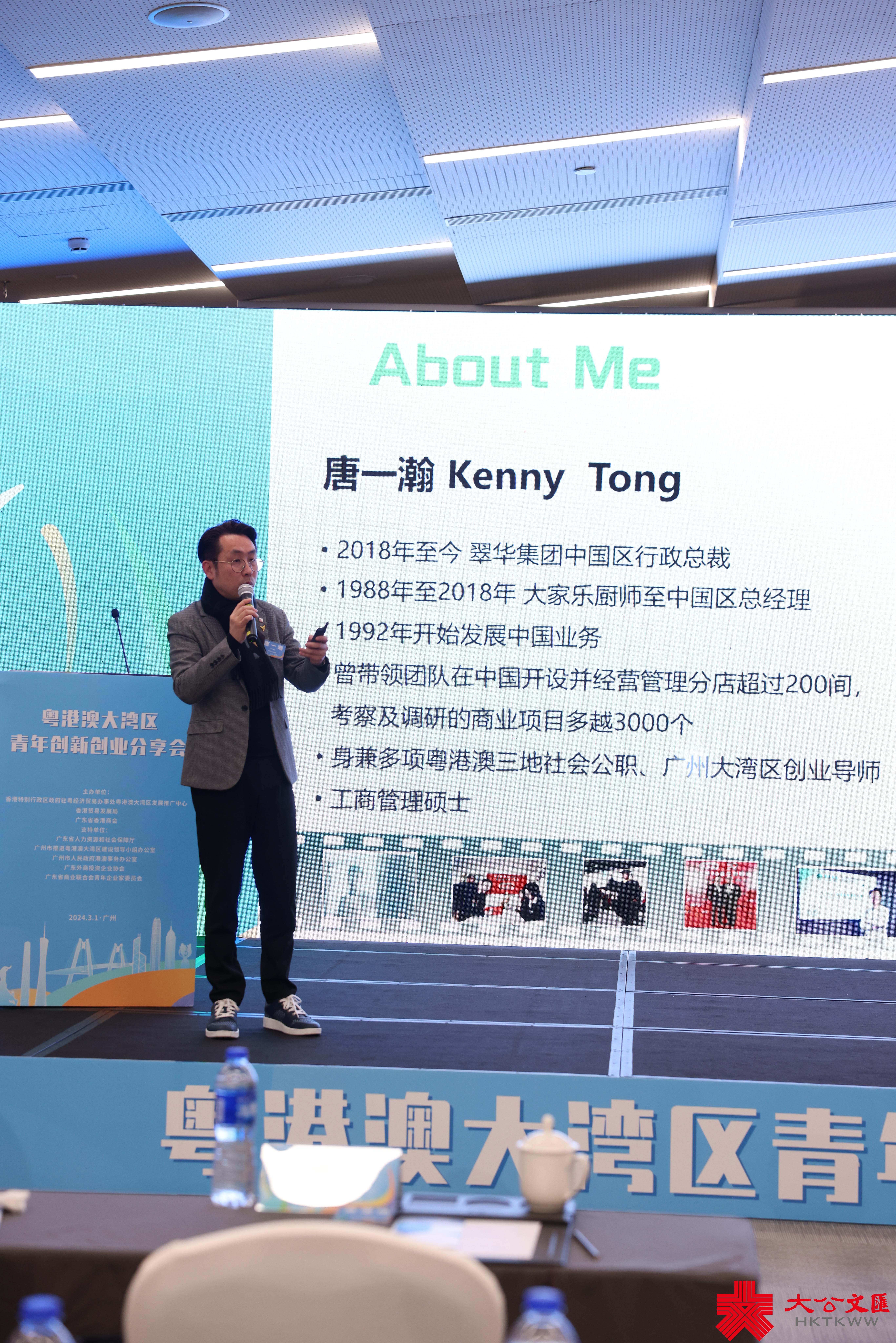 翠華集團中國區行政總裁唐一瀚北上發展已有32年,他與現場港青分享了自己在大灣區就業創業的經驗體會。「過去五年,我花很多時間為青年做創業導師,與年輕人做創業分享。」他說自己最想傳遞給香港青年的信息是:一個「屋邨仔」在內地能成長為CEO ,這一個人發展故事說明了,大家在大灣區的發展空間很大。