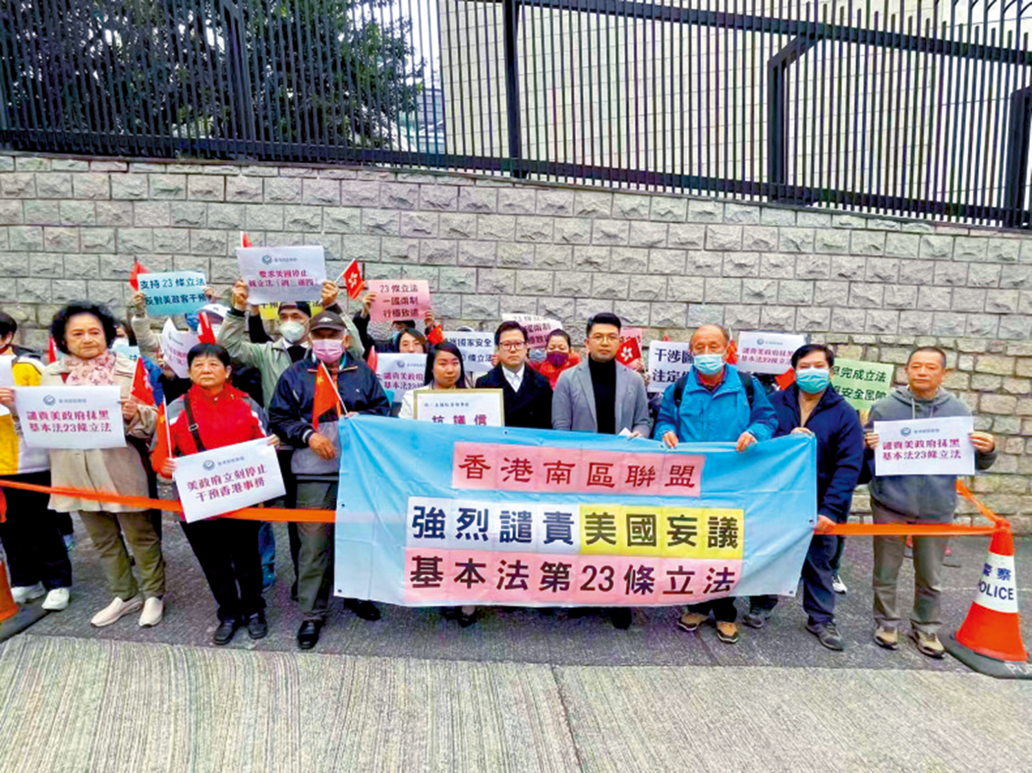 多批香港市民昨日到英國及美國駐香港領事館外請願(圖),香港南區聯盟強烈譴責美國妄議基本法第23條立法。