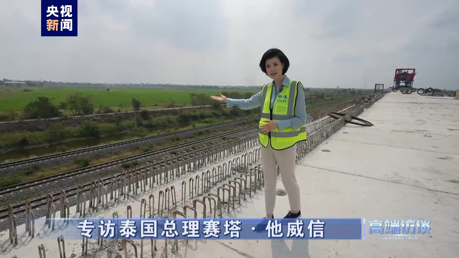 我們可以看到現場的施工現在已經取得了很大的進展。大家如果順着我的手往那個方向看呢,看到的就是泰國現有的米軌,之所以叫做米軌,是因為它採用的是當地已經延續了一個多世紀的1000毫米的設計標準。但是現在,其中有些路段已經是無法滿足現代鐵路運輸的需求。而正在建設中的中泰高鐵採用的是1435毫米的標準軌道,在完工之後有望提升整個泰國的建設和運輸能力。