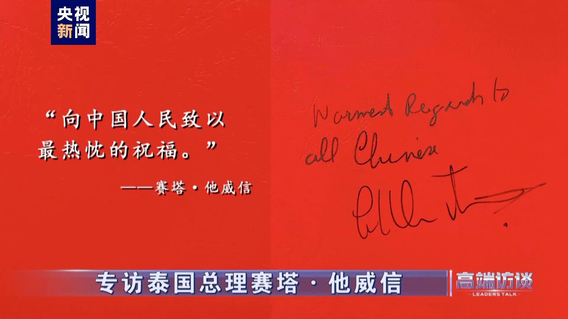 泰國總理賽塔·他威信在接受總台專訪後題詞: