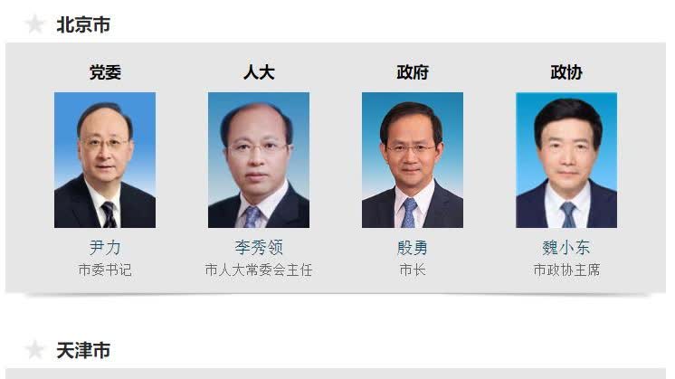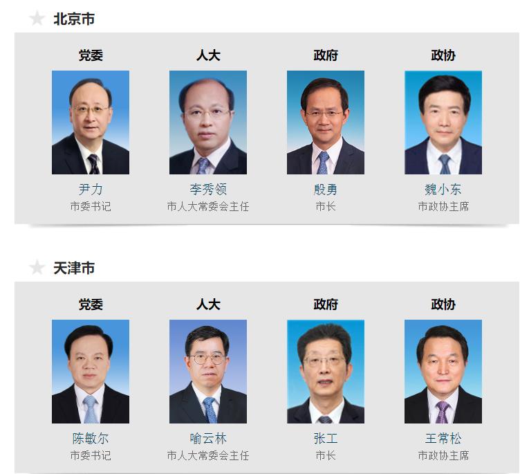 | 天津 | 陳敏爾 | 喻雲林 | 張工 | 王常松 |