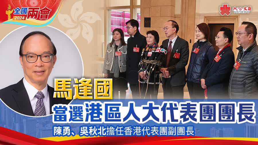 昨晚,十四屆全國人大二次會議香港代表團舉行小組會議,選舉馬逢國擔任香港代表團團長,陳勇、吳秋北擔任香港代表團副團長。