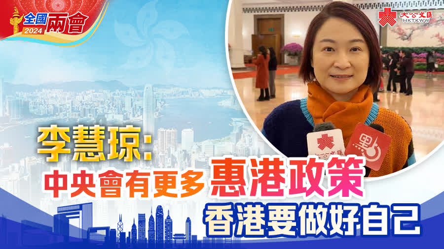 大公文匯全媒體報道,正在北京出席全國兩會的全國人大常委會委員李慧琼接受媒體訪問時表示,對中央未來繼續支持香港各方面發展充滿信心,相信中央會落實更多惠港政策,但香港亦要做好自己。