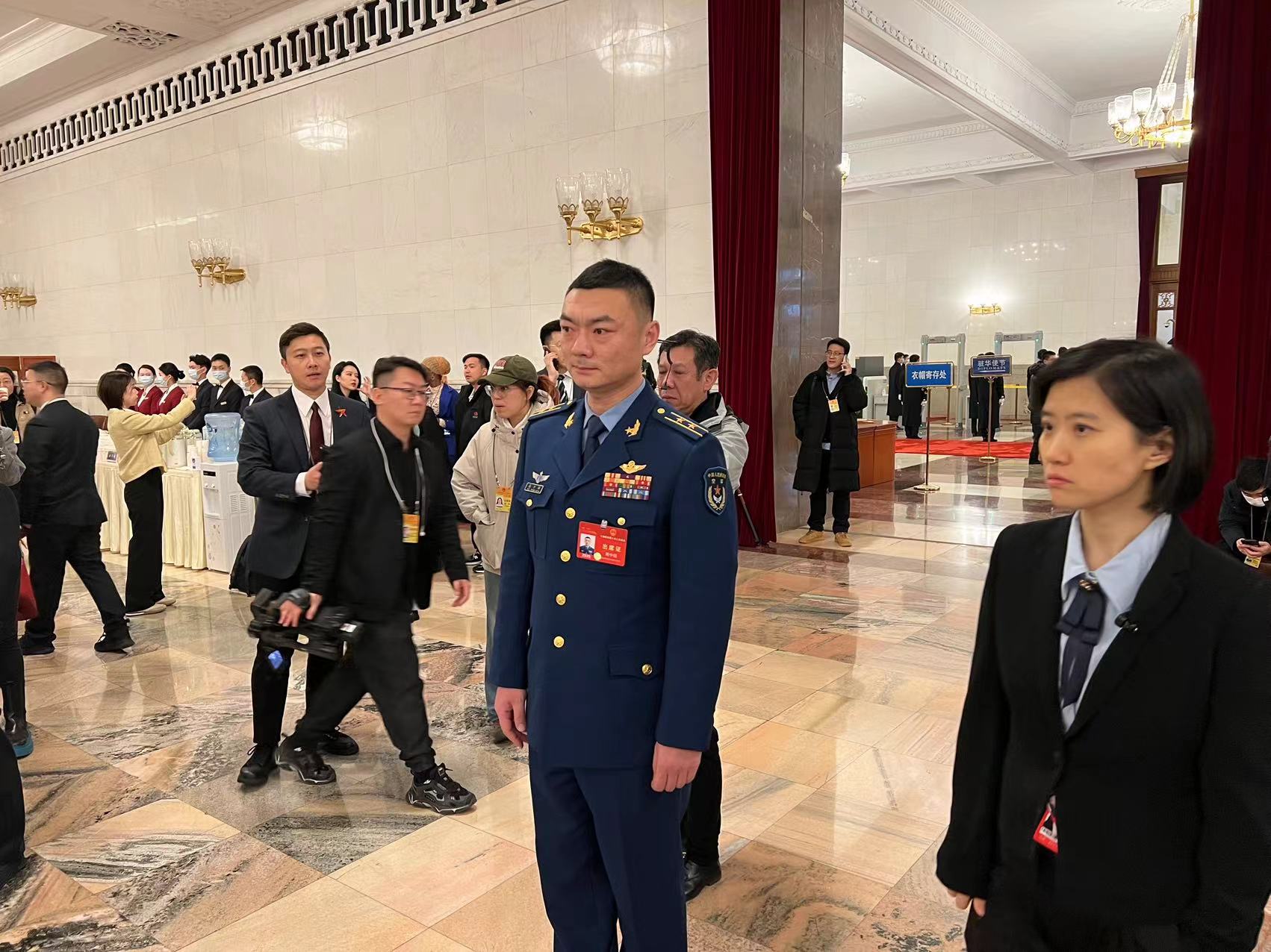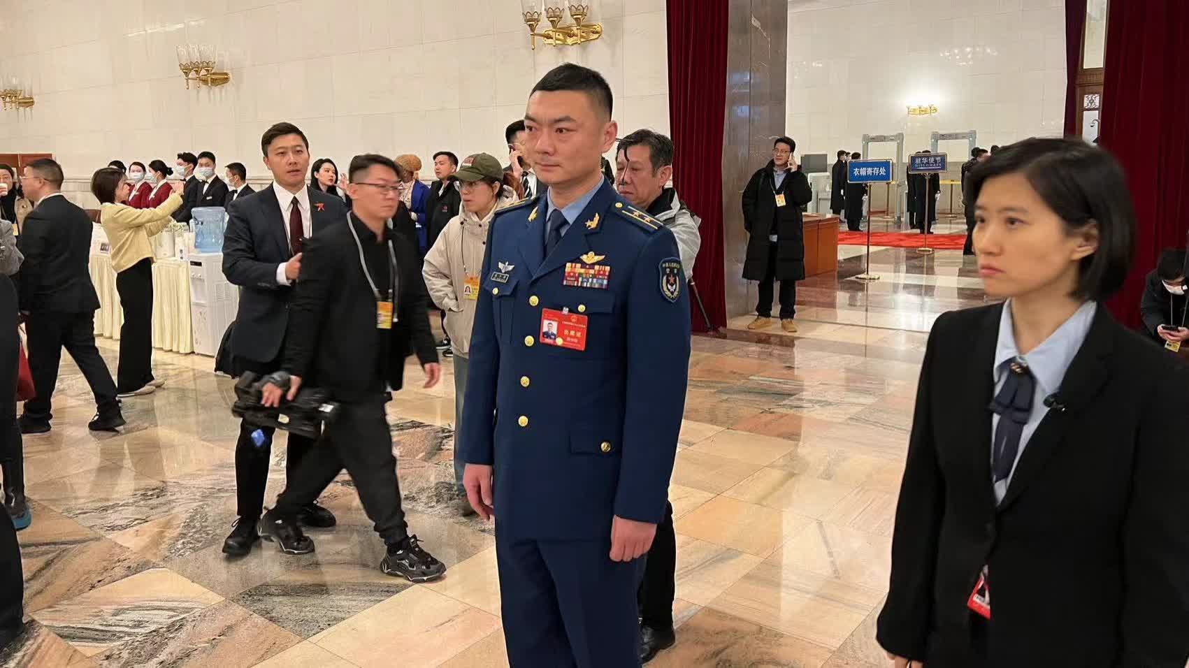 獲得了空軍「金頭盔」榮譽的全國人大代表、空軍航空兵某旅副參謀長高中強,現場分享了他和戰友奮鬥強軍的故事。高中強講道,2023年,他第二次駕駛殲20飛機,執行為志願軍烈士遺骸歸國護航任務,他和戰友結合航線計劃,氣象特點等進行全面分析,特別是針對複雜氣象條件下的飛行進行全面細緻的準備,為的就是確保萬無一失的接迎英雄回家。