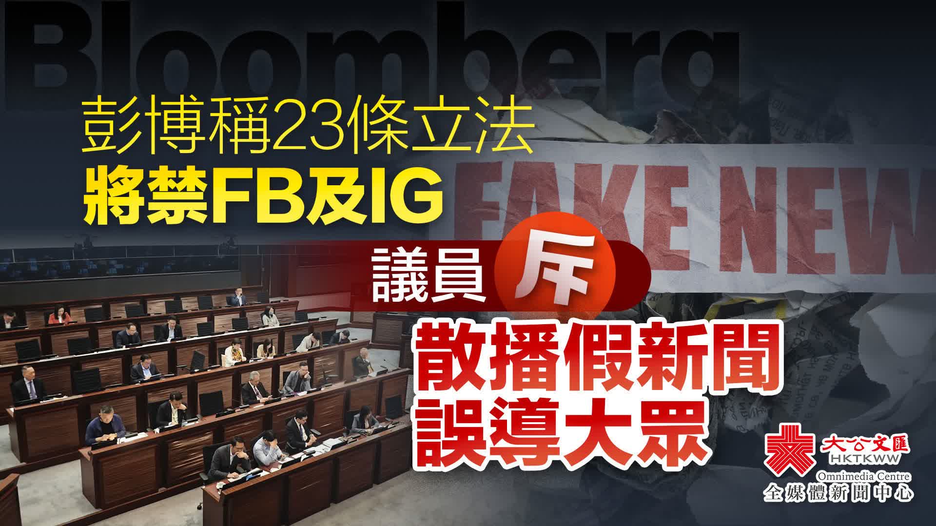(大公文匯全媒體 記者 盧葦)立法會三個小組委員會今日(6日)下午2時舉行聯席會議,由保安局交代基本法23條立法公眾諮詢結果。會議上,不少議員提及彭博新聞社(Bloomberg News)今日發布不實報道,誤指「特區政府將禁用Facebook、Instagram等社交媒體」,促請特區政府譴責彭博散播假新聞。