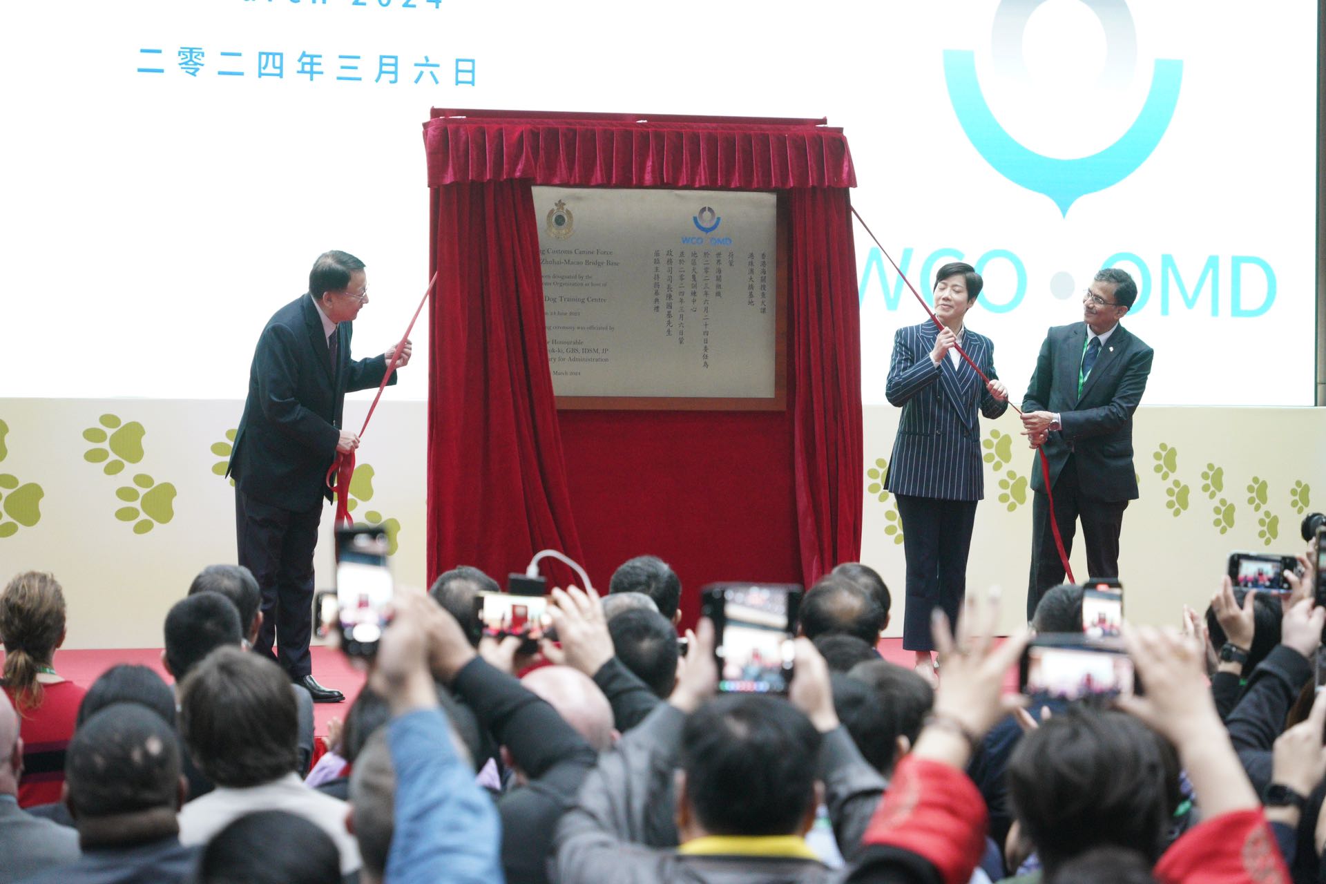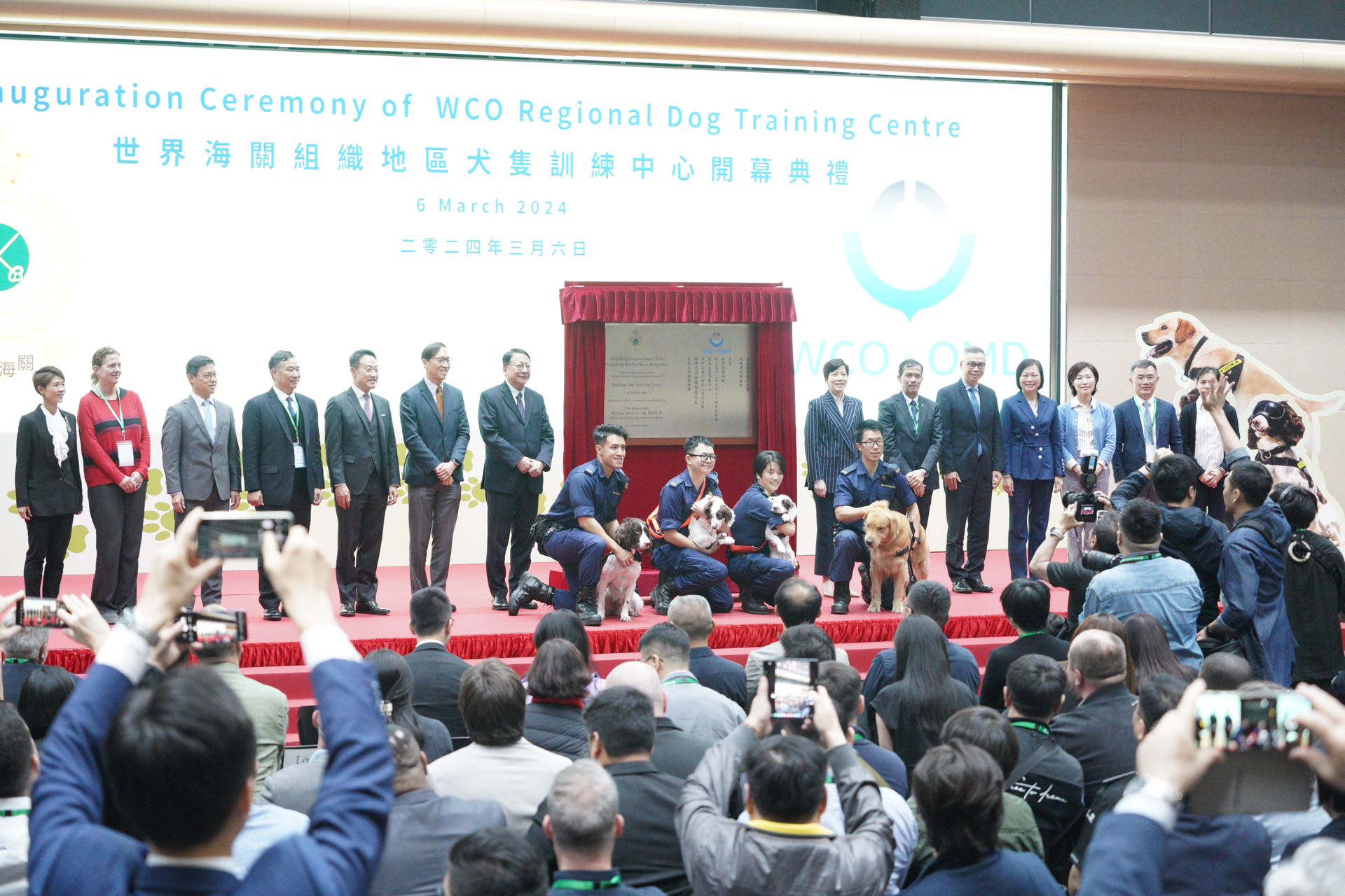 大公文匯全媒體報道,第六屆世界海關組織全球犬隻論壇暨地區犬隻訓練中心開幕典禮今日(6日)舉行,香港海關關長何珮珊主持典禮。海關並於港珠澳大橋的基地,即場展示搜查犬的訓練工作。