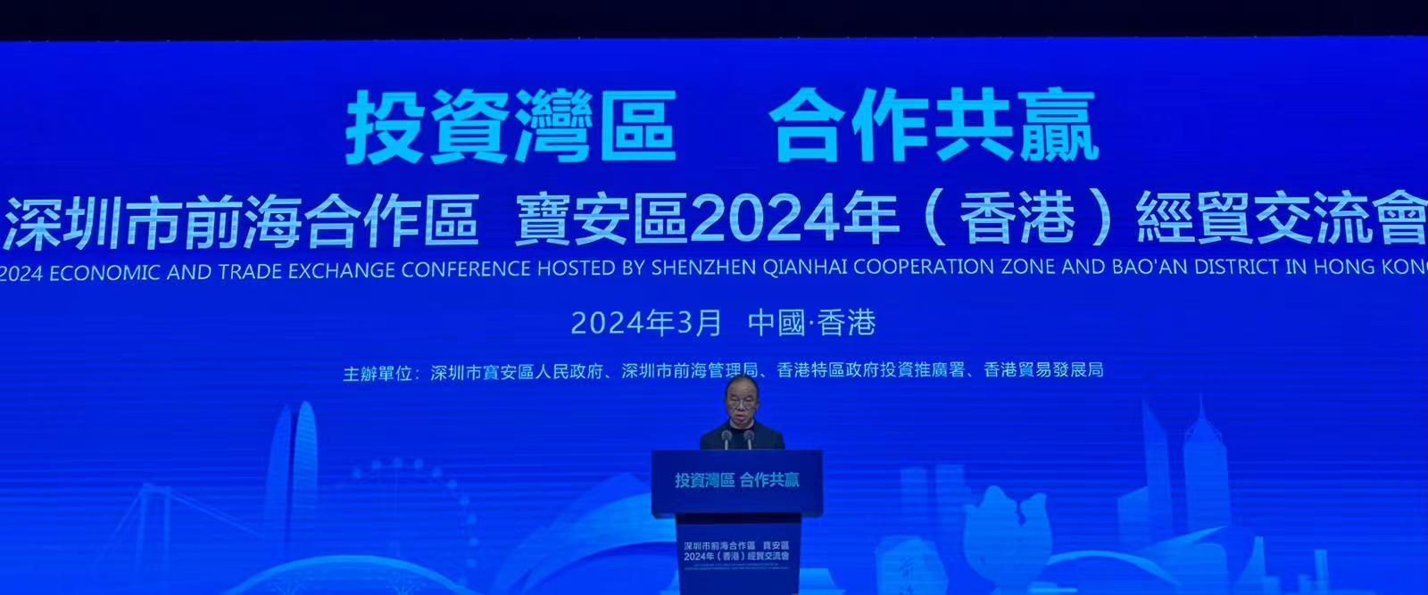 大公文匯全媒體報道,政制及內地事務局局長曾國衞今日(8日)出席「投資灣區 合作共贏」深圳市前海合作區·寶安區2024年(香港)經貿交流會,他在致辭時指,前海擴區後,範圍涵蓋了寶安區內多個重點發展區域,去年寶安區的經濟發展強勁,地區生產總值超5000億元人民幣,增長率達8.5%。