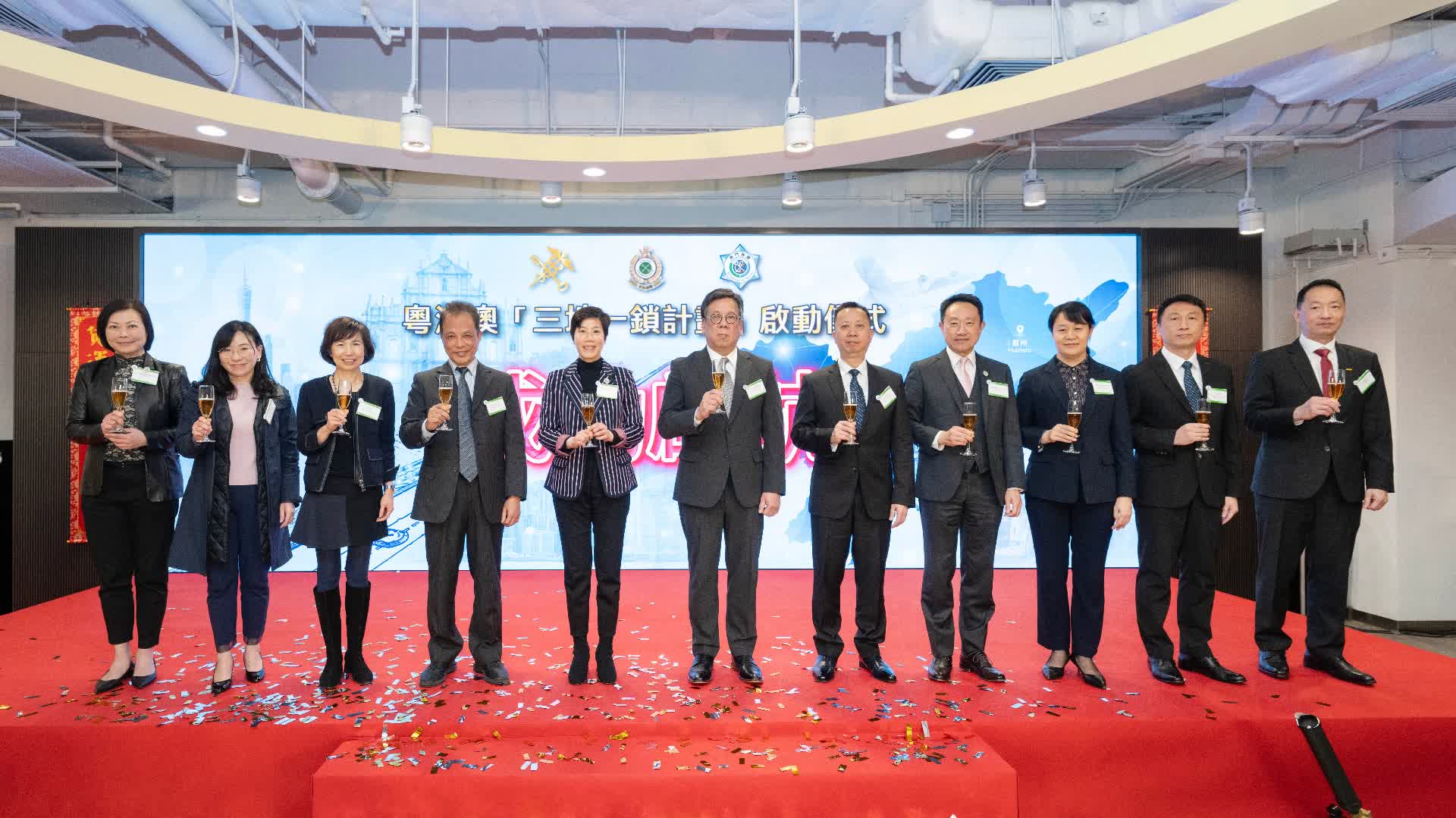 大公文匯全媒體報道,粵港澳「三地一鎖計劃」今日(8日)正式啟動,由商務及經濟發展局局長丘應樺、海關關長何珮珊、澳門海關關長黃文忠和國家海關總署廣東分署副主任馮國清在DHL中亞區樞紐中心主持啟動儀式。首批貨物今日由樞紐中心經港珠澳大橋及大橋澳門口岸側新興建的跨境貨物轉運站,順利運抵澳門的清關點。